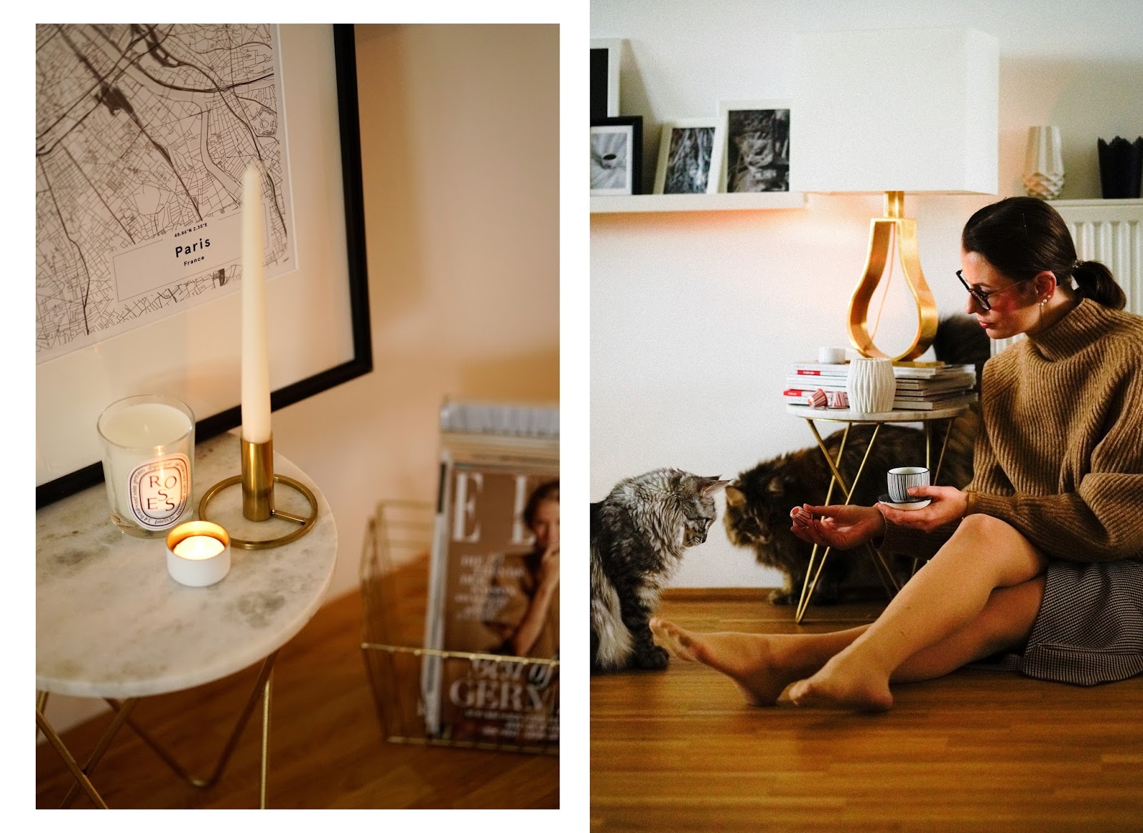 Ich mag Kerzen und Lichter das ganze Jahr über, aber nur zu Weihnachten versprühen Sie diesen ganz besonderen Zauber. Jeden Abend wenn ich von der Arbeit nach Hause komme, zünde ich gaaaanz viele Kerzen an, schalte die Weihnachtsbeleuchtung am Balkon ein und verbrenne ein wenig Weihrauch. Ich liebe es, wenn der Weihrauchduft die Wohnung erfüllt, für mich ist das absolutes Christmas Feeling! Dann wird noch ein wenig Weihnachtsmusik aufgelegt und sollte ich schon welche haben, widme ich mich dem Einpacken von Geschenken.