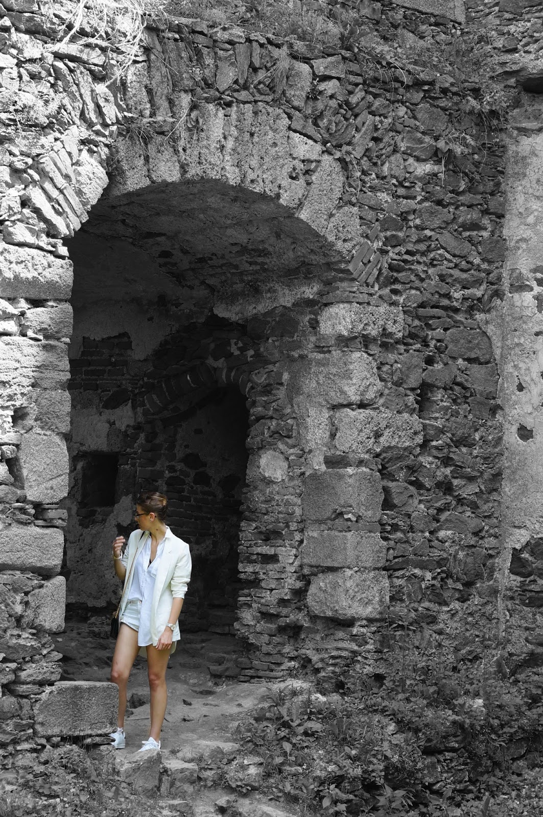 For summer has finally arrived in Austria last week, my boy and me tried to spend as much time outside as possible. We do day trips almost every weekend, but this time we decided not to go too far away from our hometown (it was just too hot to explore a city or go shopping). Finally, we ended up at a very beautiful castle ruin nearby Linz, that can be explored freely and where we shot a new outfit. And so I can proudly present you this year’s first all white summer look on the blog. As much as I do love all black in winter I love wearing all white looks in summer!