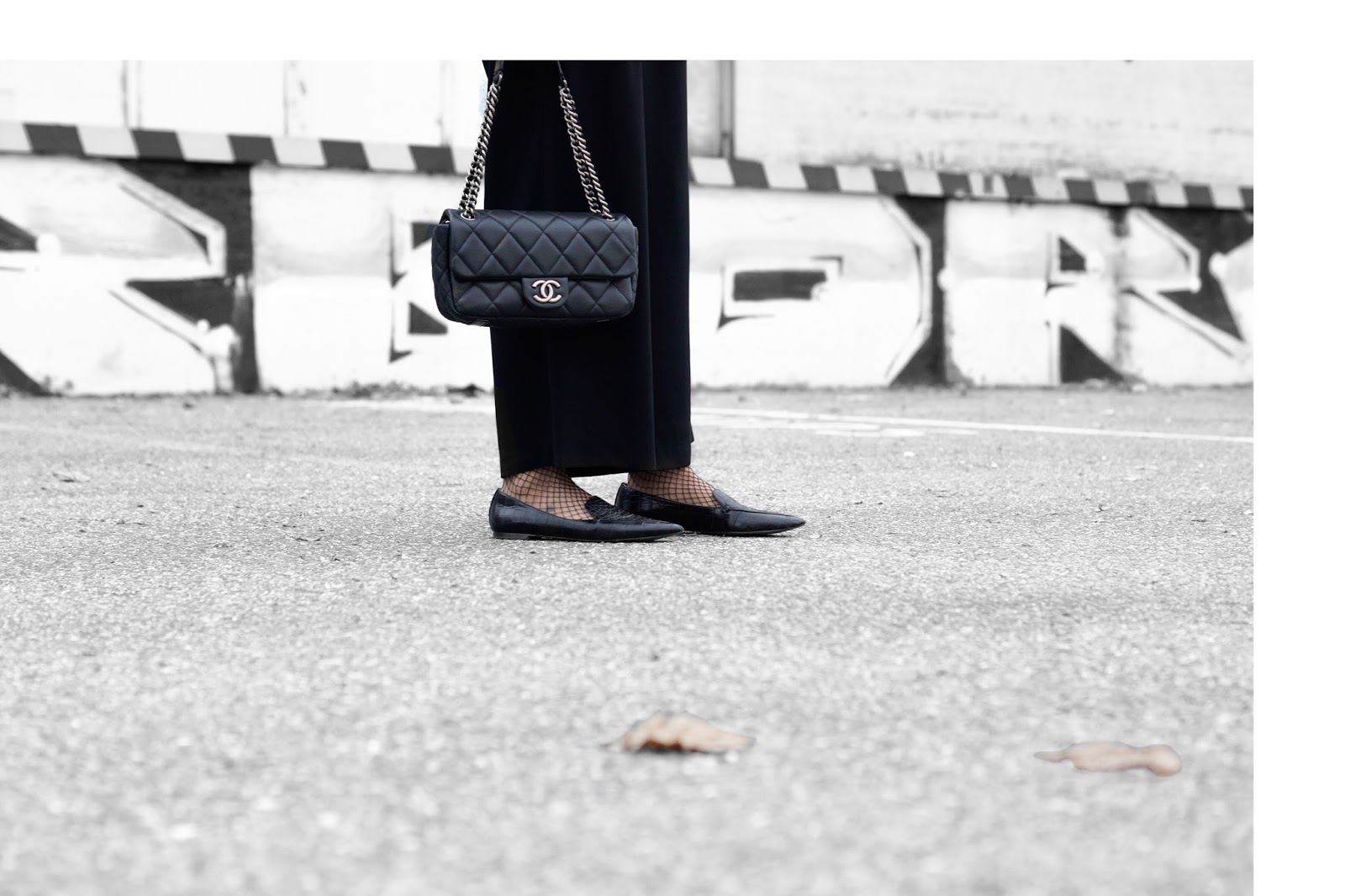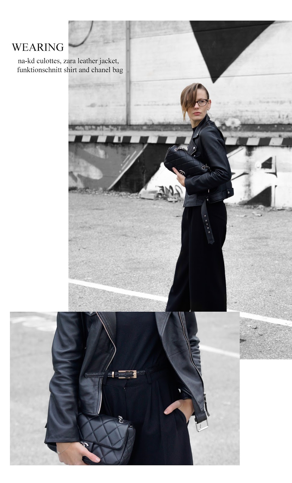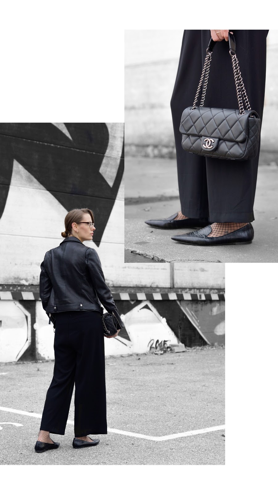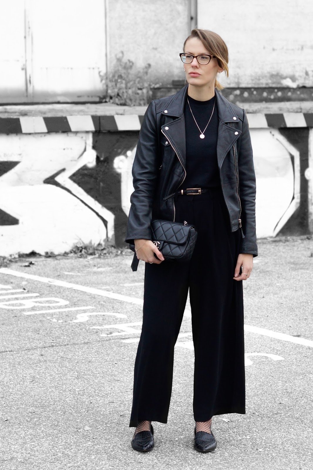 WEARING – culottes: na-kd fashion // leather jacket: zara // shirt: funktionschnitt // necklace: jukserei // ring: pamdora // bracelet: and other stories // belt: mango // bag: chanel // fishnet socks: h&m // loafers: mango
