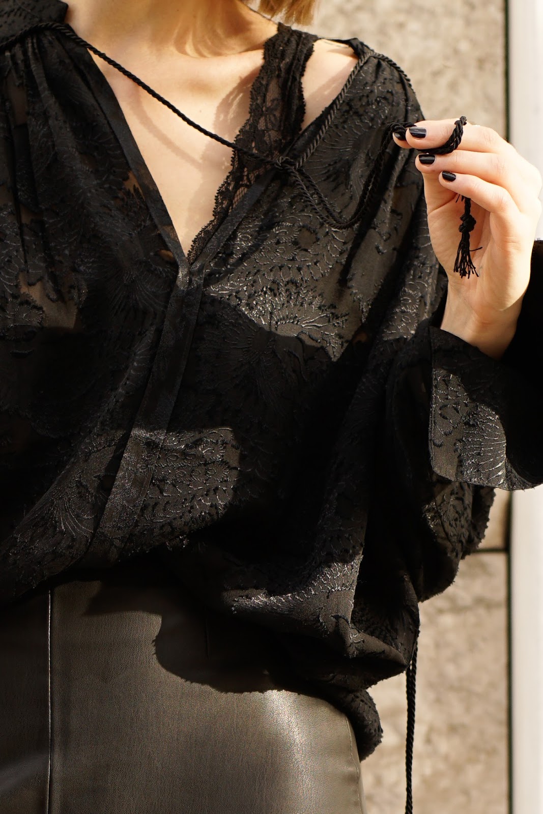 You can never go wrong with all black! Love this chic look babe! That blouse is so pretty!
