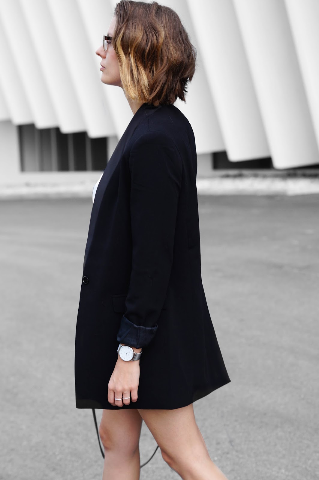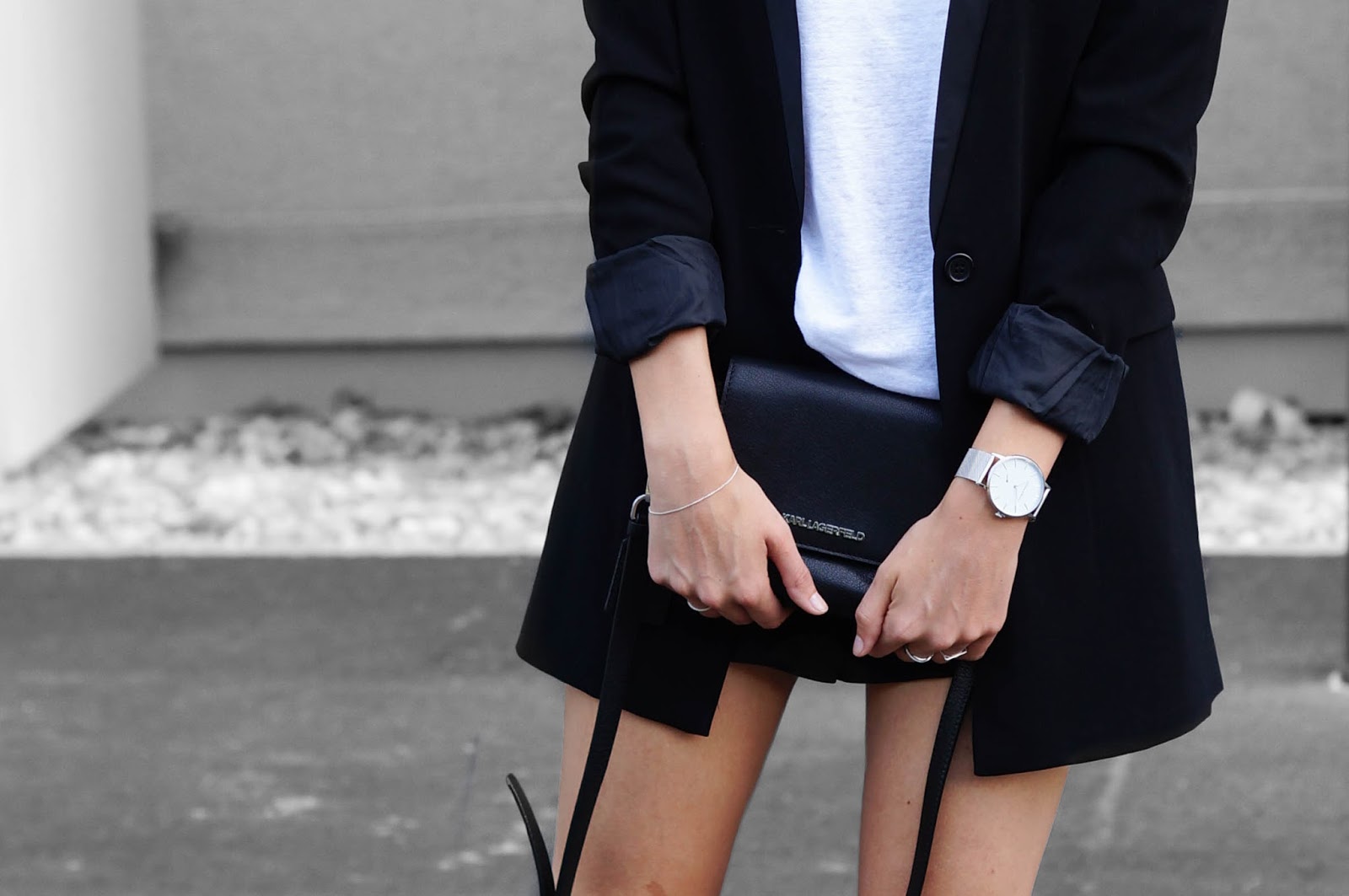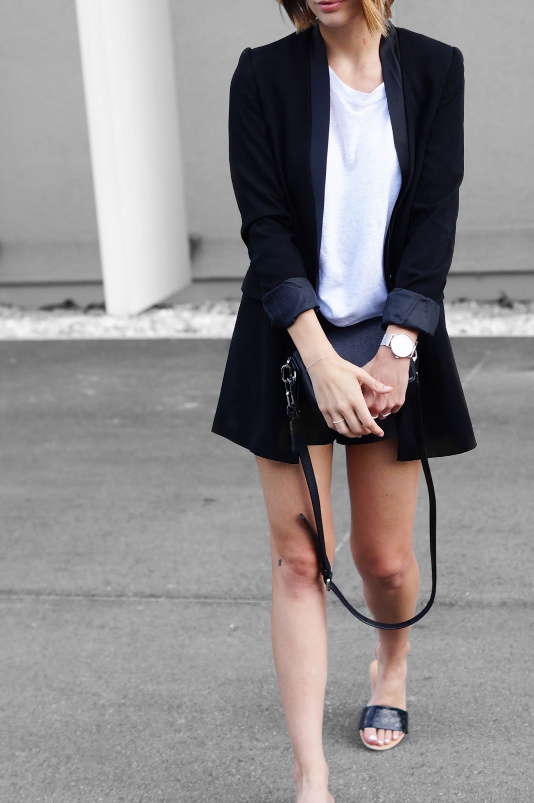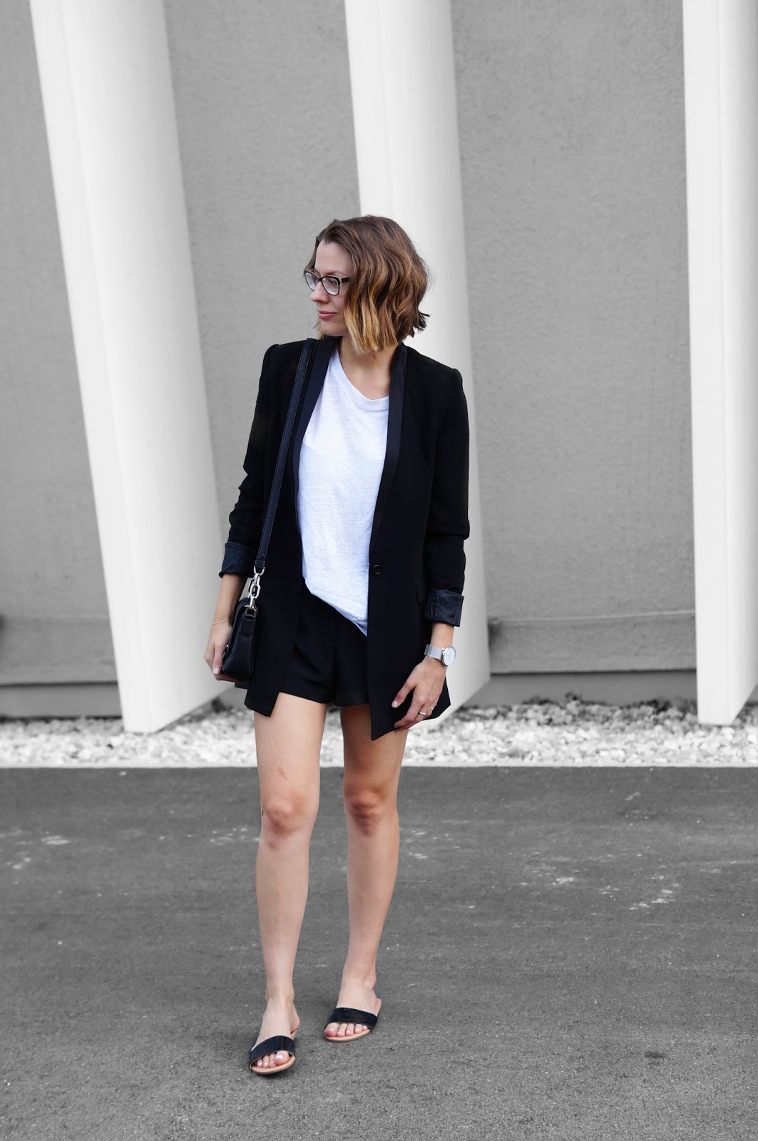 WEARING – shirt: funktionSchnitt // shorts: h&m // blazer: forever21 // watch: wardour&brewer // rings: jukserei // bracelet: and other stories // bag: karl lagerfeld // slides: h&m