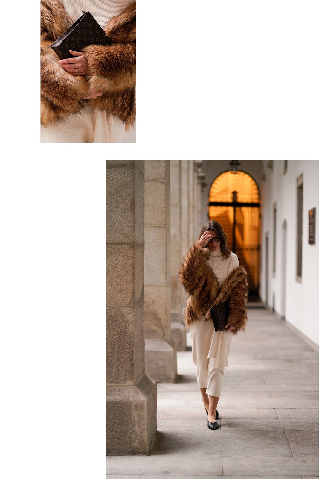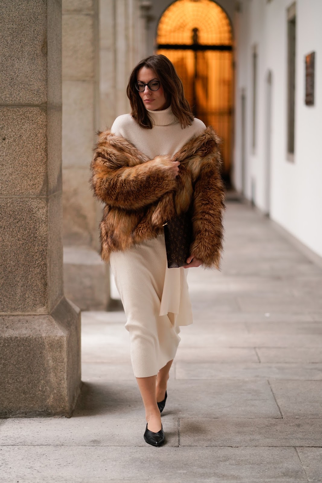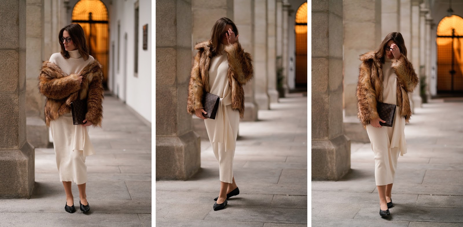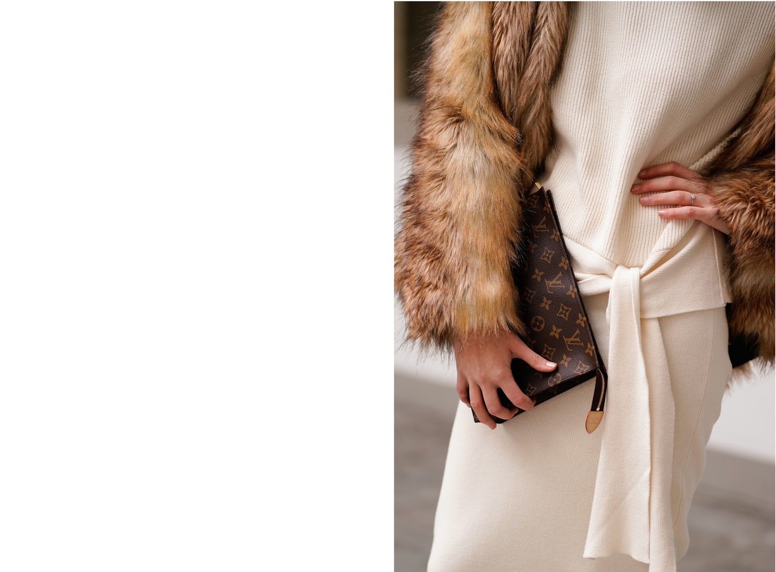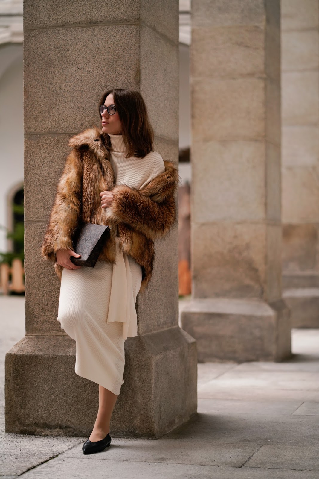 Ich habe mich beim Styling meines Bleistiftrockes für eine elegante Winterkombi entschieden. Weil mir der Winter schon wieder zu lang wird und die Sonne sich gerade nur sehr sporadisch zeigt, hab ich mal wieder zum bevorzugten Farbschema Weiß und Braun gegriffen. Zum Bleistiftrock aus Strick habe ich den passenden Rollkragenpullover mit Knopfdetail, beides von ZARA, kombiniert. Dazu trage ich eine Faux Fur Jacke von ASOS und eine LOUIS VUITTON Clutch. Eine kleine Auswahl an weiteren Outfits mit Pencil Skirts findet ihr übrigens hier: BUTTON UP! THE PENCIL SKIRT EDITION, PENCIL SKIRT ADDICTION und WEIß IM WINTER: SO TRAGT IHR WINTER WHITES! Tragt ihr auch so gerne Bleistiftröcke?
