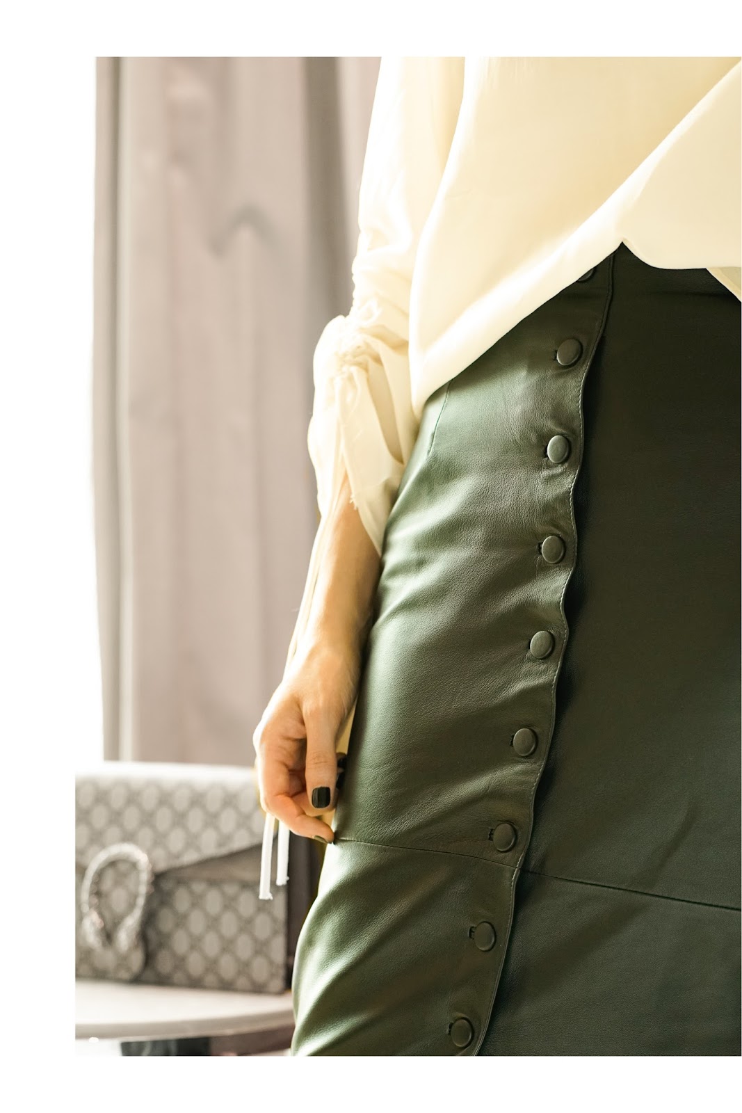 BUTTON UP! // WEARING – button up leather skirt: edited the label via about you // ruffled top: h&m // bangle and ring: jukserei // hat (similar here ): h&m // bag: gucci dionysus // slides: edited the label via about you