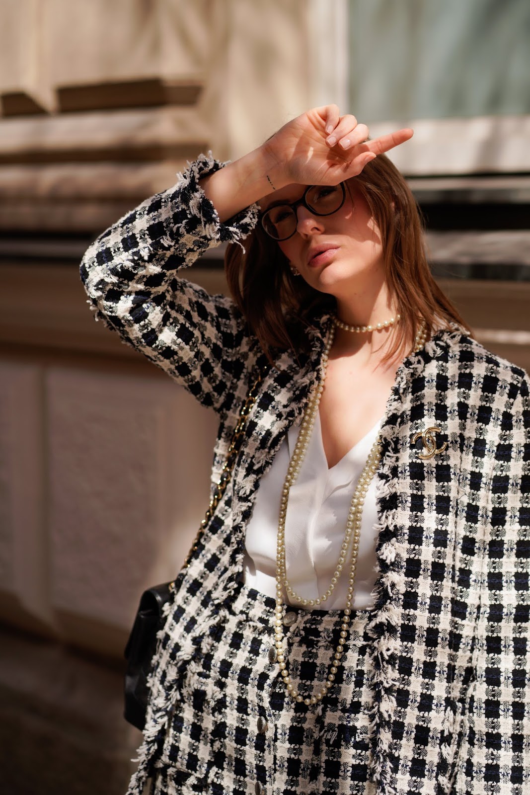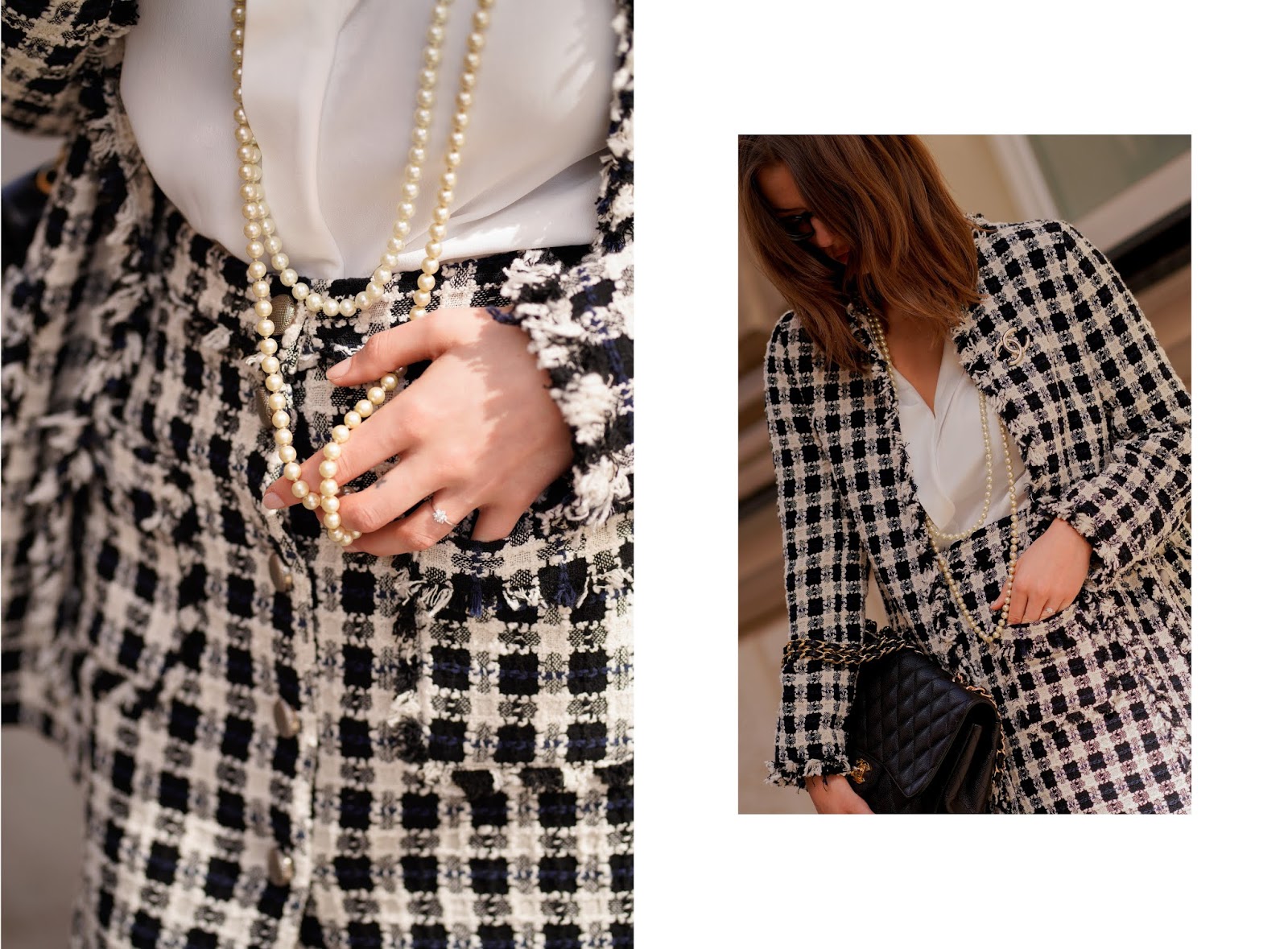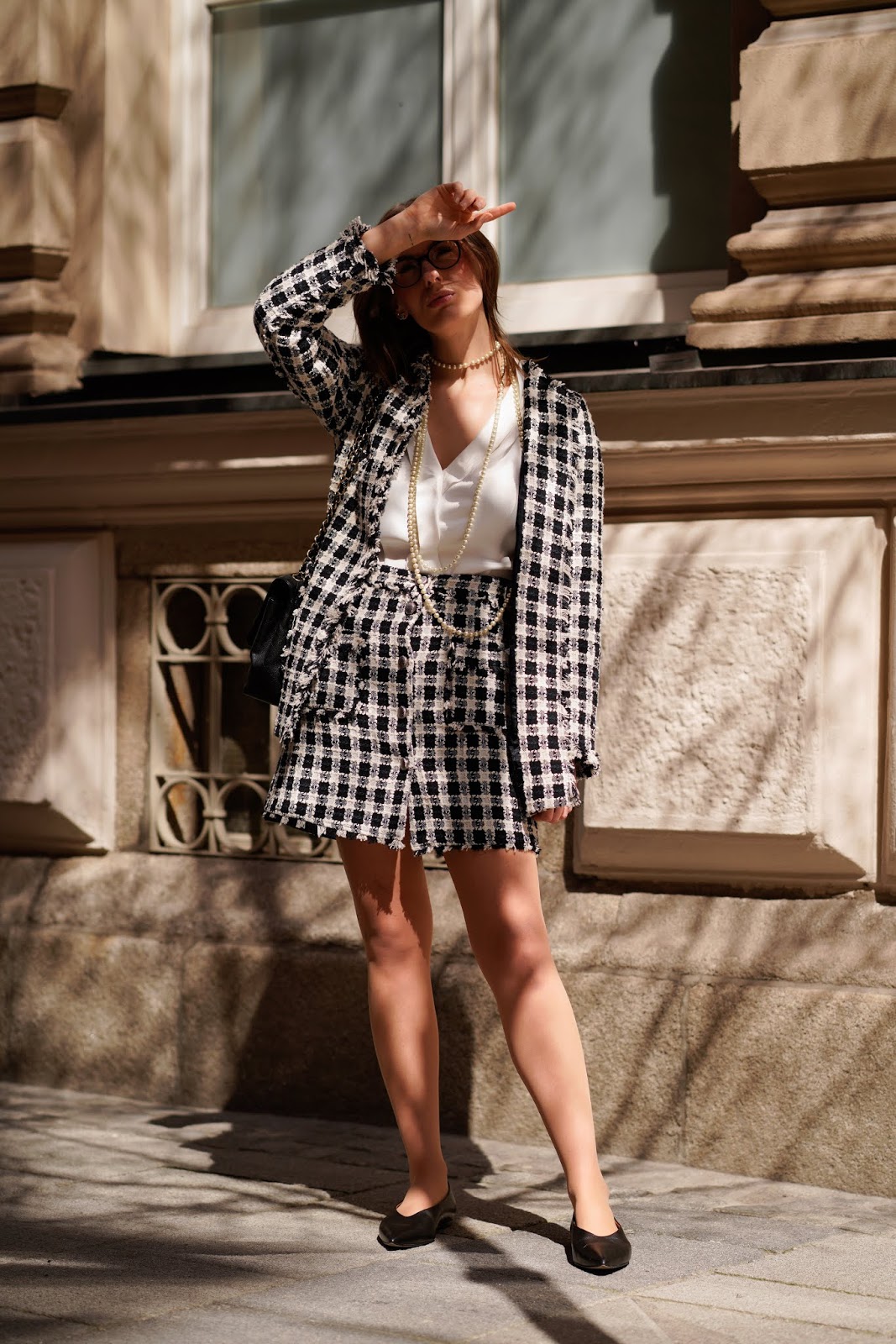 CHANEL KOSTÜM DUPE // WEARING – tweed blazer: zara // tweed rock: zara // blouse: zara // bag: chanel timeless jumbo