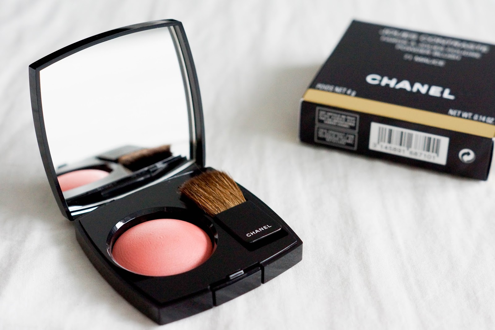 Ähnlich wie mit meinem Schminkverhalten habe ich es bis dato auch mit den Produkten gehalten (was mich nicht sonderlich interessiert, muss auch nicht sonderlich viel kosten) und zu den günstigen Varianten aus der Drogerie gegriffen, vornehmlich Essence, Catrice und Maybelline. Dank easyCOSMETIC hatte ich nun aber die Chance, mal teure Chanel Makeup Produkte zu testen und ich habe mich für die folgenden drei Produkte entschieden: Chanel Joues Contraste Rouge in #71 Malice (4g), Chanel Poudre Universelle Compacte in #20 Clair (15g) und Chanel Poudre Universelle Libre in #20 Clair (30g).