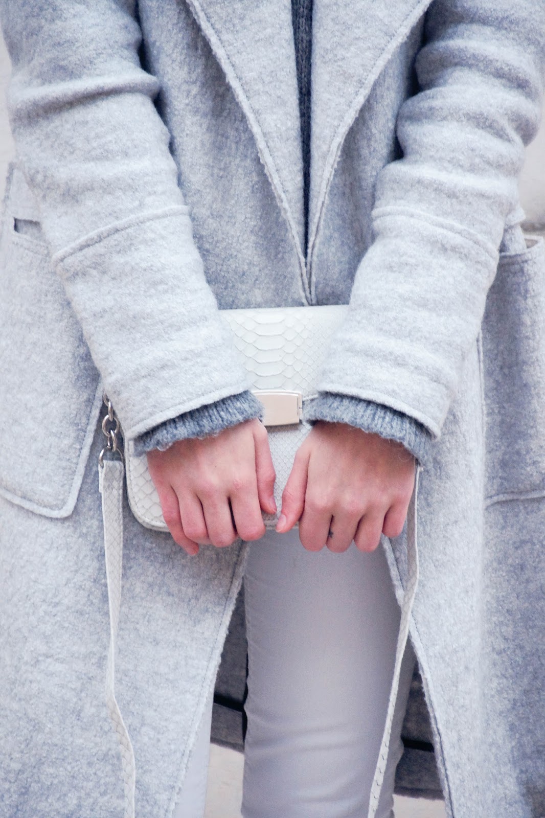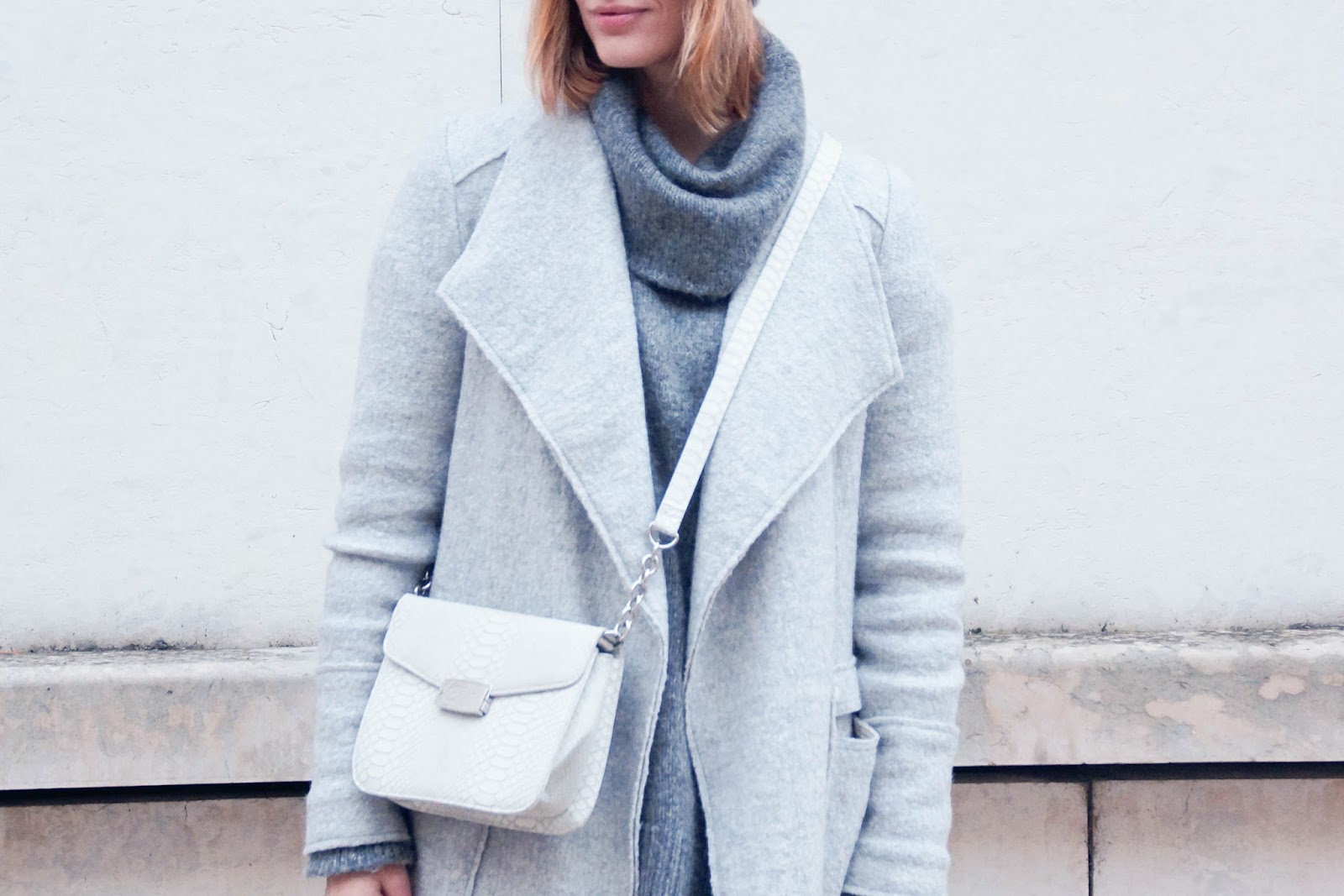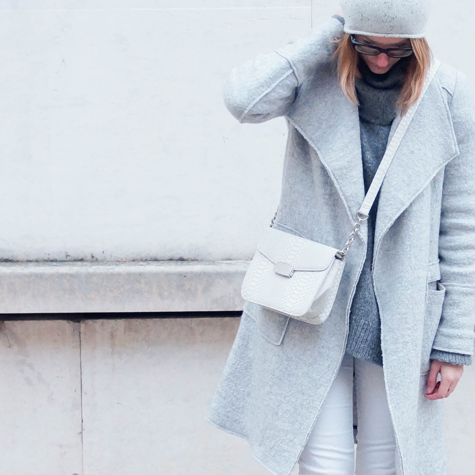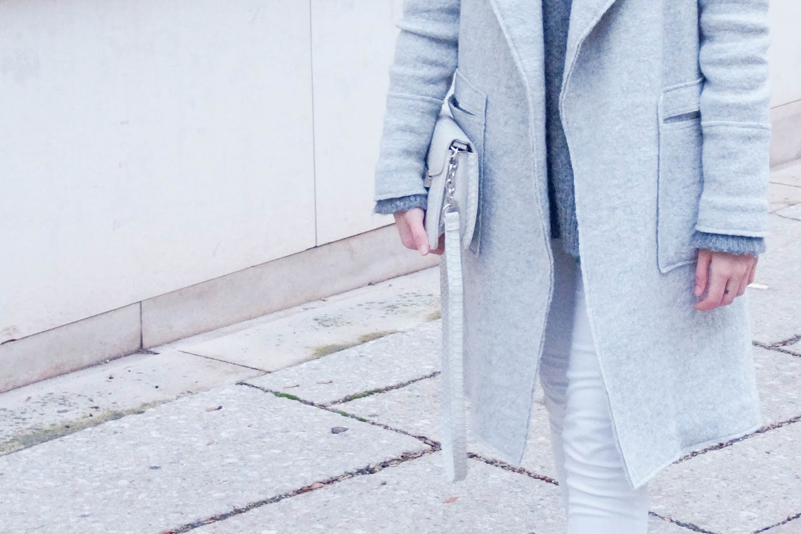 Due to just lying on the Couch the last few days and eating too much unhealthy stuff I needed to go for a walk in the fresh air so badly yesterday and we decided to shoot a new outfit alike, this time, a very light-colored one. I love to wear such outfits when strolling around the city. Jeans (no matter which color), my new lightgrey Zara wool coat, which is part of my standard repertoire lately, big knits, my beloved Stan Smith (maybe one of the best purchases in 2015) und my Cos cashmere beanie is all I need 😉