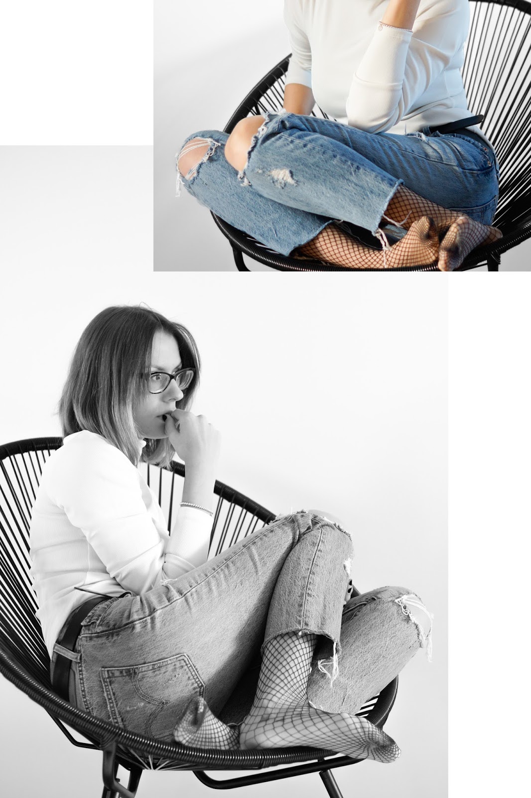 WEARING – turtleneck shirt: h&m // denim: levi’s 501CT // belt: h&m premium // bracelet: tiffany&co // fishnets: h&m