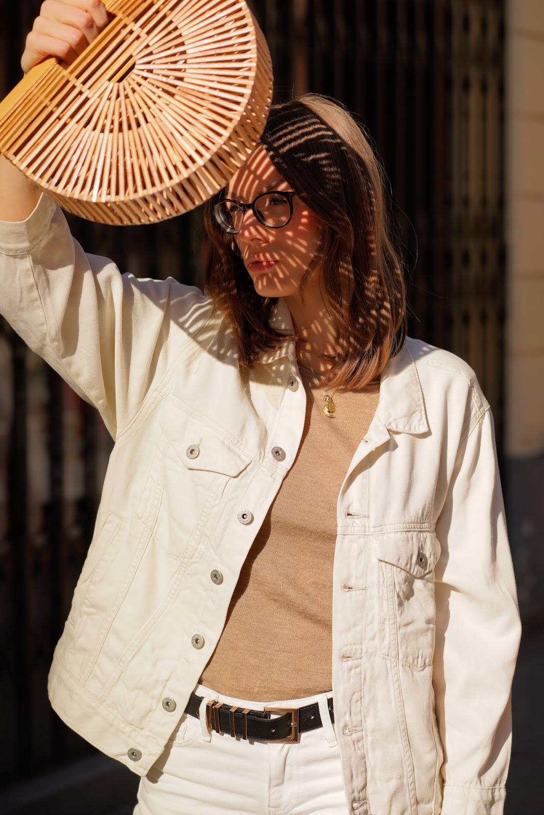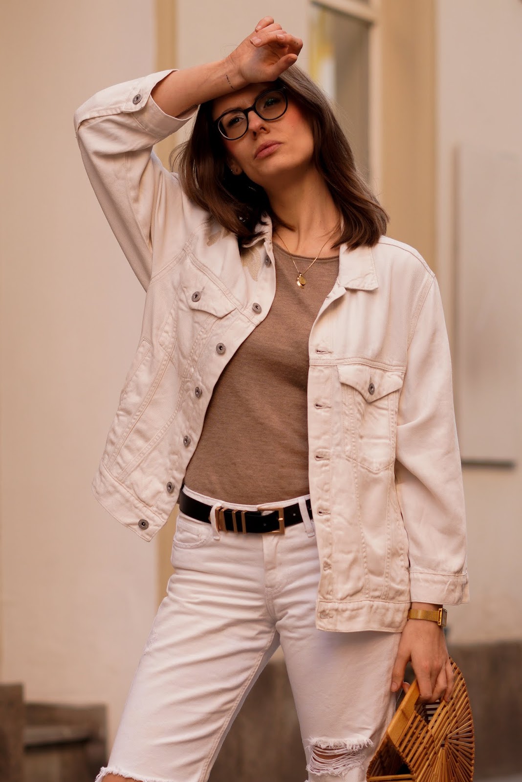 Die weißen Denim-Teile stehen dir auf jeden Fall total gut und ich finde sie passen perfekt zu Sommer. In Kombination mit der Tasche ist es wirklich toller Sommerlook.