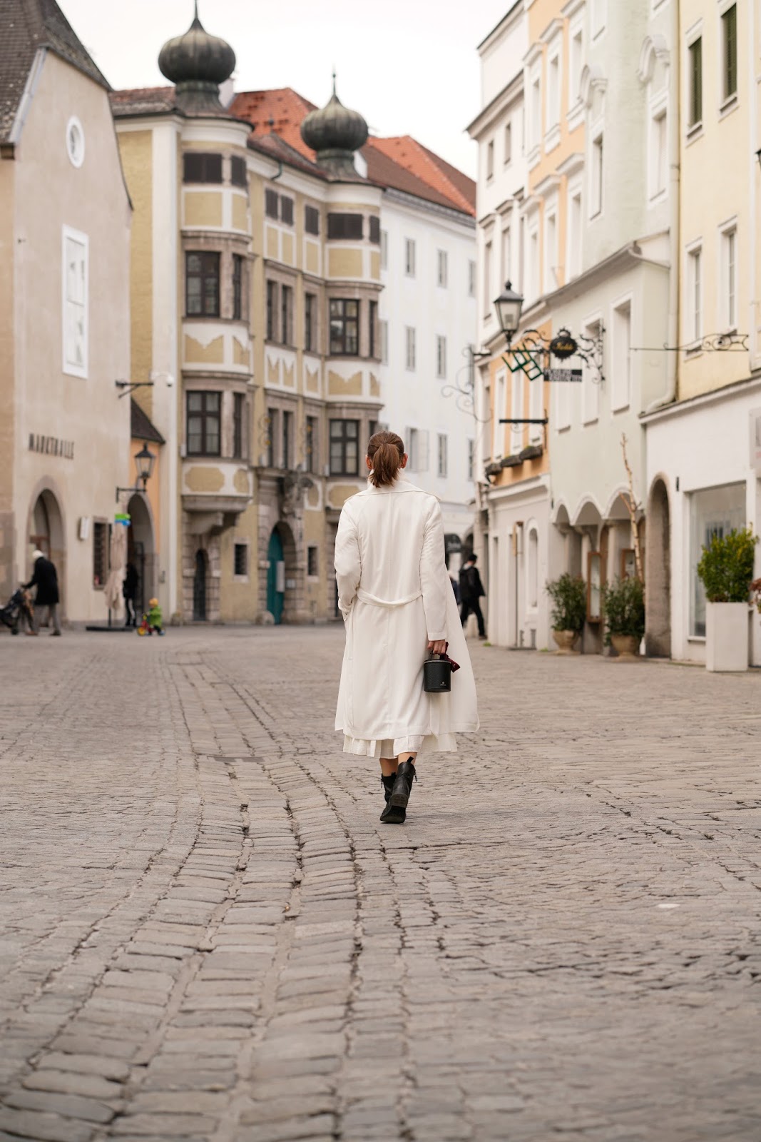 Ich habe meinen H&M Plisseerock für einen entspannten Sonntagsspaziergang lässig kombiniert und trage dazu einen Oversized Pulli und Boots von ZARA und einen Trenchcoat von BIKBOK. Die süße Aigner Bag hab ich übrigens beim Aigner Press Day bekommen und bin echt verliebt ihn sie! Mein Handy geht zwar nicht rein (;p), aber ich liebe ihre Form. Die ist einfach mal was Anderes.