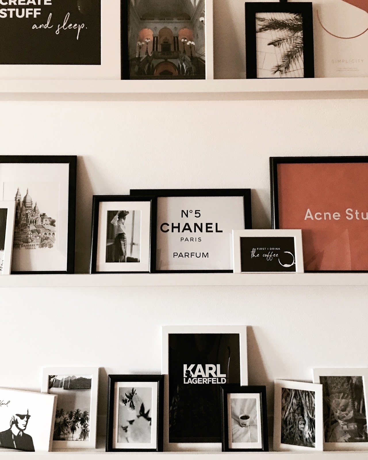 Die Lagerfeld Bilder sind total toll und überhaupt mag ich so Bilder-Wände total gern! Sieht vor allem echt gemütlich aus 🙂