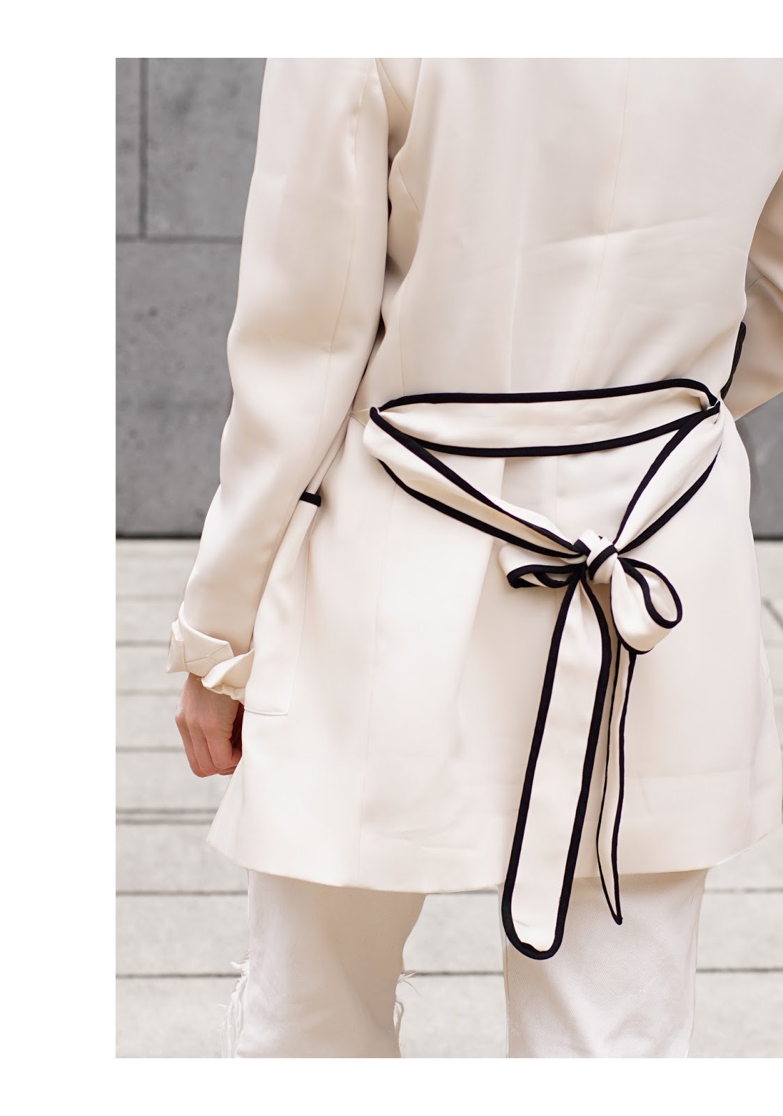 Zum Start in die neue Arbeitswoche melde ich mich mit einem Outfit zurück, das gar nicht besser zum Wochenende passen könnte. Dabei werden unsere komfortabelsten Kleidungsstücke jetzt zum angesagten Pyjama Trend gestyled. Schon als letztes Jahr die Models in Spitzen-Negligés, Pyjamas und Morgenmäntel über die internationalen Laufstege huschten, war ich verliebt in den Pyjama Trend. Dass sich geeignete Teile aber gar nicht so einfach finden lassen, habe ich nicht gedacht … Mehr als ein Jahr war ich auf der Suche nach einem Blazer im Pyjama-Stil. Als es letztes Jahr dieses tolle Modell bei Zara gab, hab ich es schlicht und einfach nicht mitbekommen. Also blieb mir nur übrig, das tolle Stück an anderen Bloggern zu bewundern … Vor ein paar Wochen hab ich den Blazer allerdings im Insta-Sale einer Bloggerin entdeckt und sofort zugeschlagen. Manchmal wird Warten belohnt, haha!