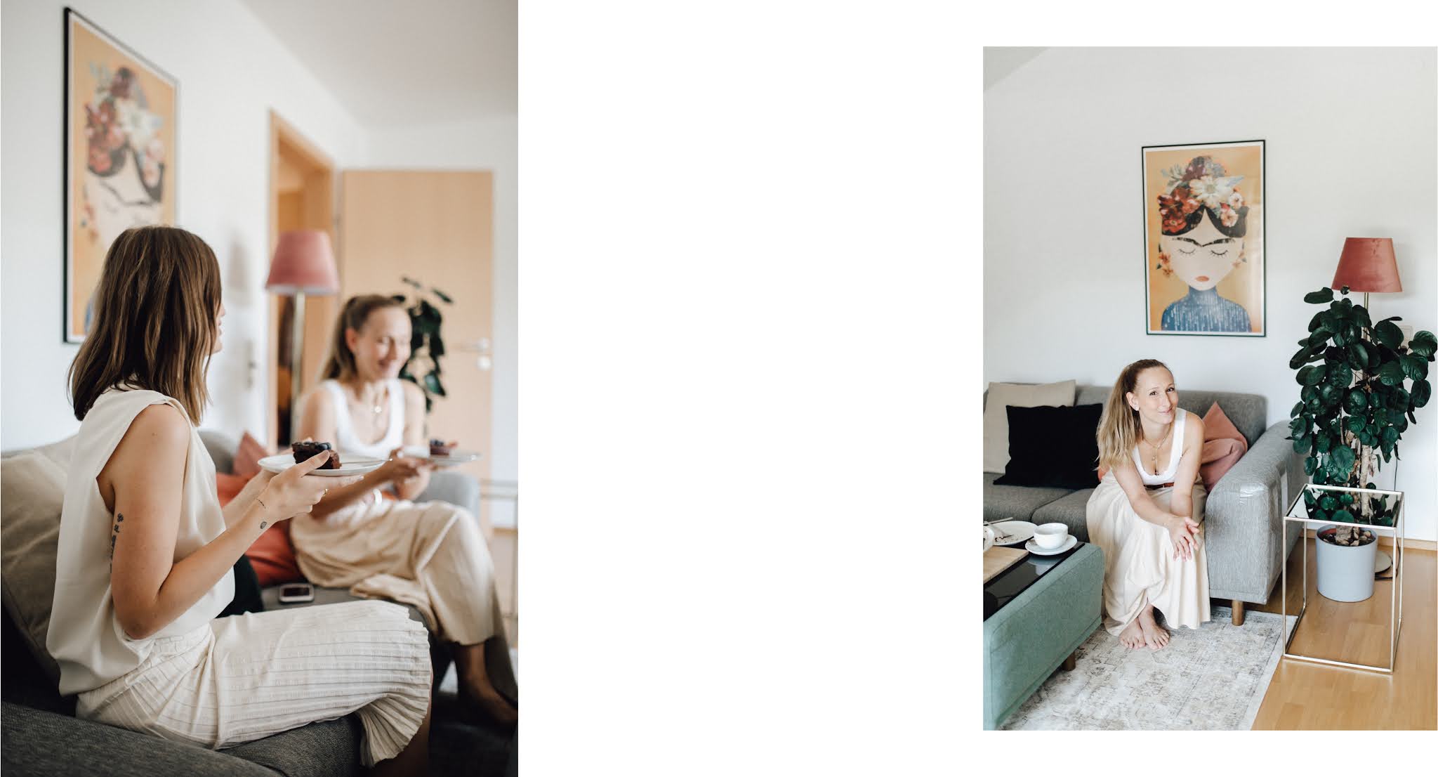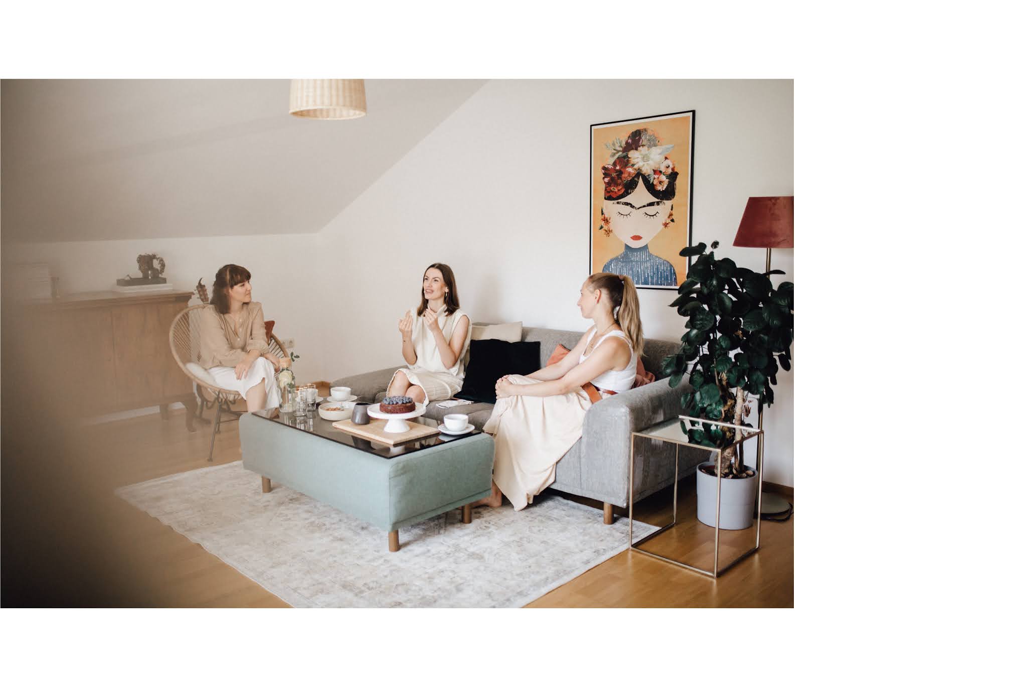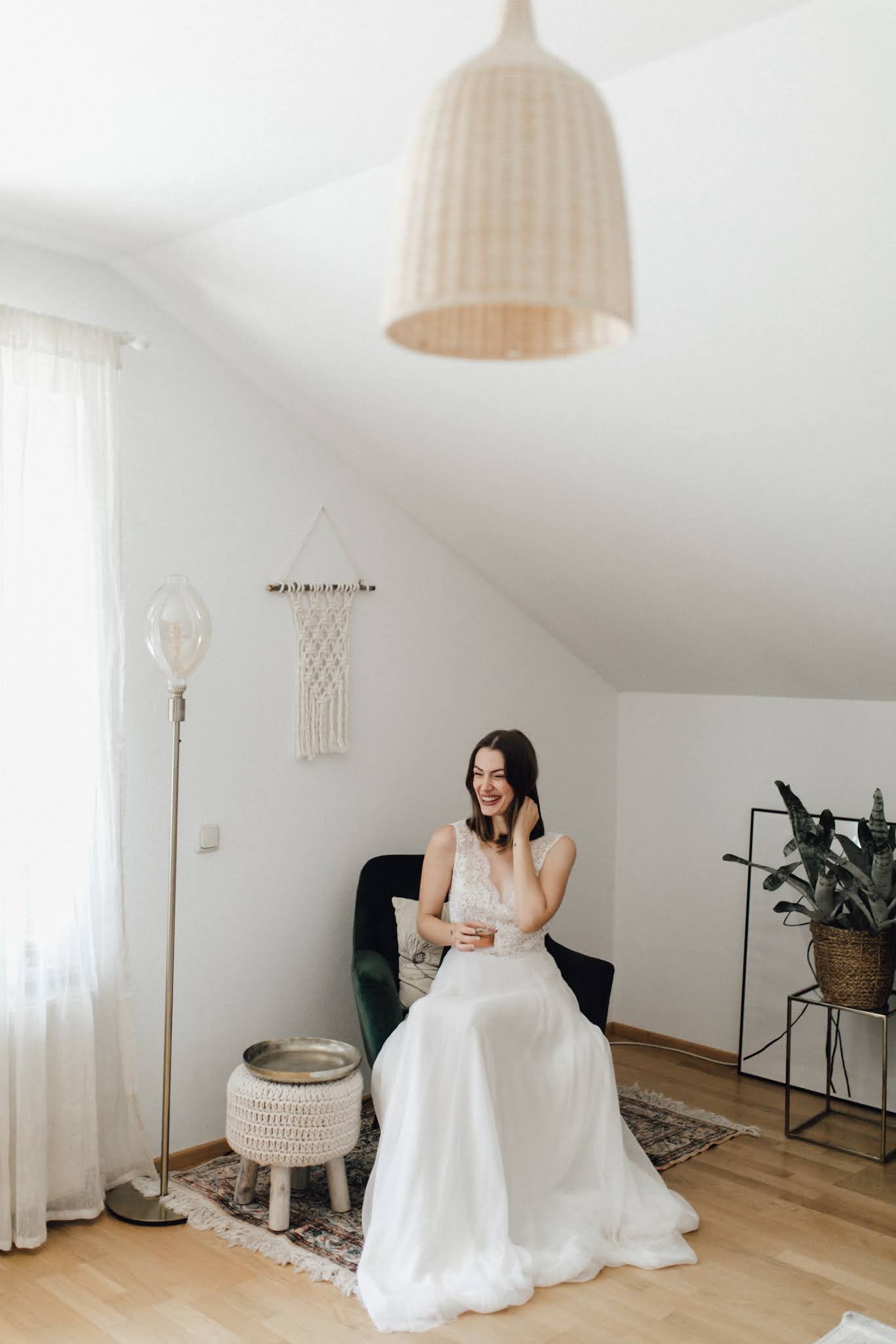Julia Sophie gave us a very warm welcome in her studio, which is located in St. Marien, Upper Austria — not far from Linz. I instantly felt comfortable with her. She is such a caring and loving person and you just can’t help liking her. And although I had not met her before, it felt like we had known each other for years! Before we started talking about the wedding and trying on her amazing wedding dresses, she treated us to some cups of coffee and the most delicious vegan chocolate cake you can imagine! We really had a wonderful time sitting in her beautifully furnished and decorated living room talking about anything and everything.