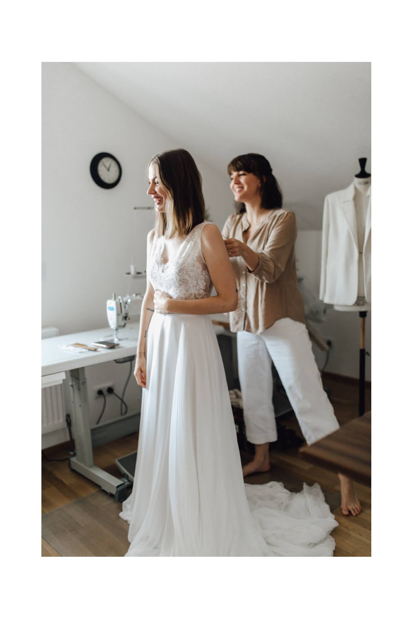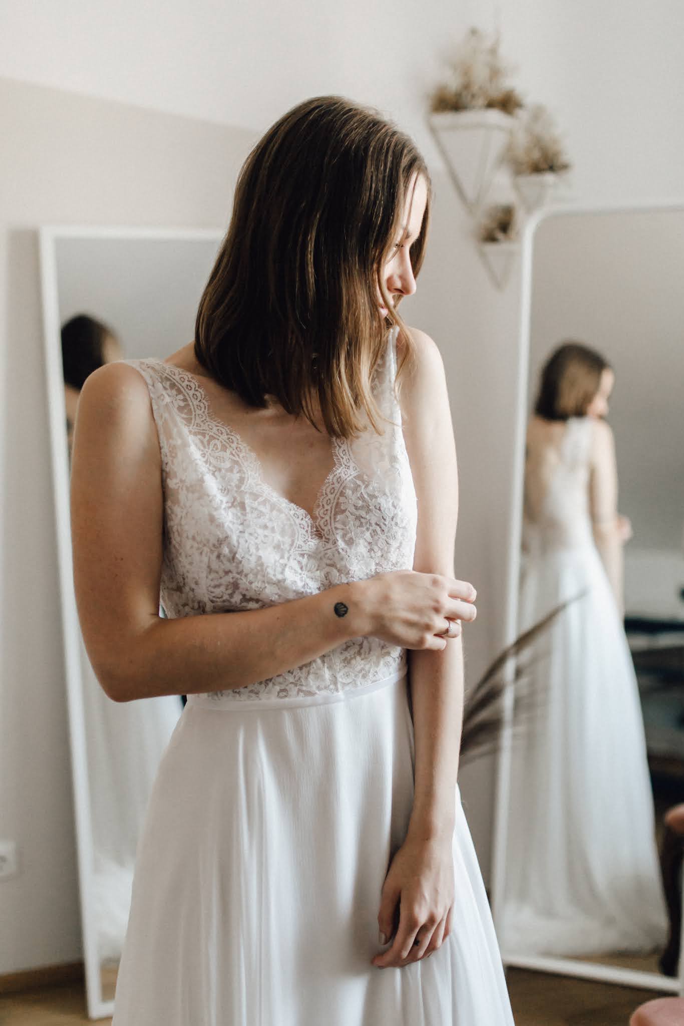 If you’re looking for a handmade wedding dress I can really recommend to take a look at Julia Sophie‘s website. She doesn’t just put a lot of effort into her gorgeous wedding dresses but she‘s also a very kind person. And I’m really happy that I did not just find the perfect wedding dress but a good friend too!
