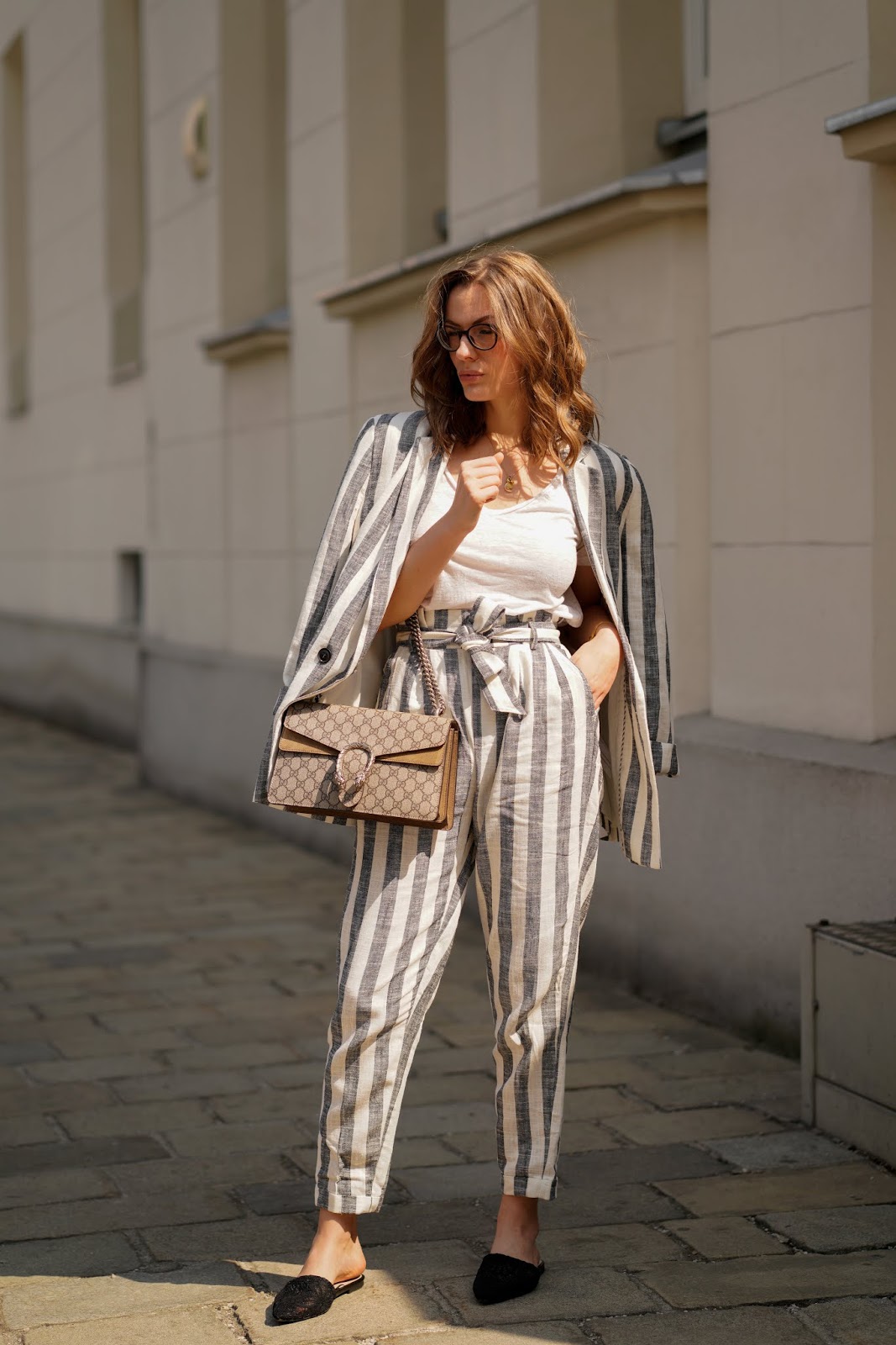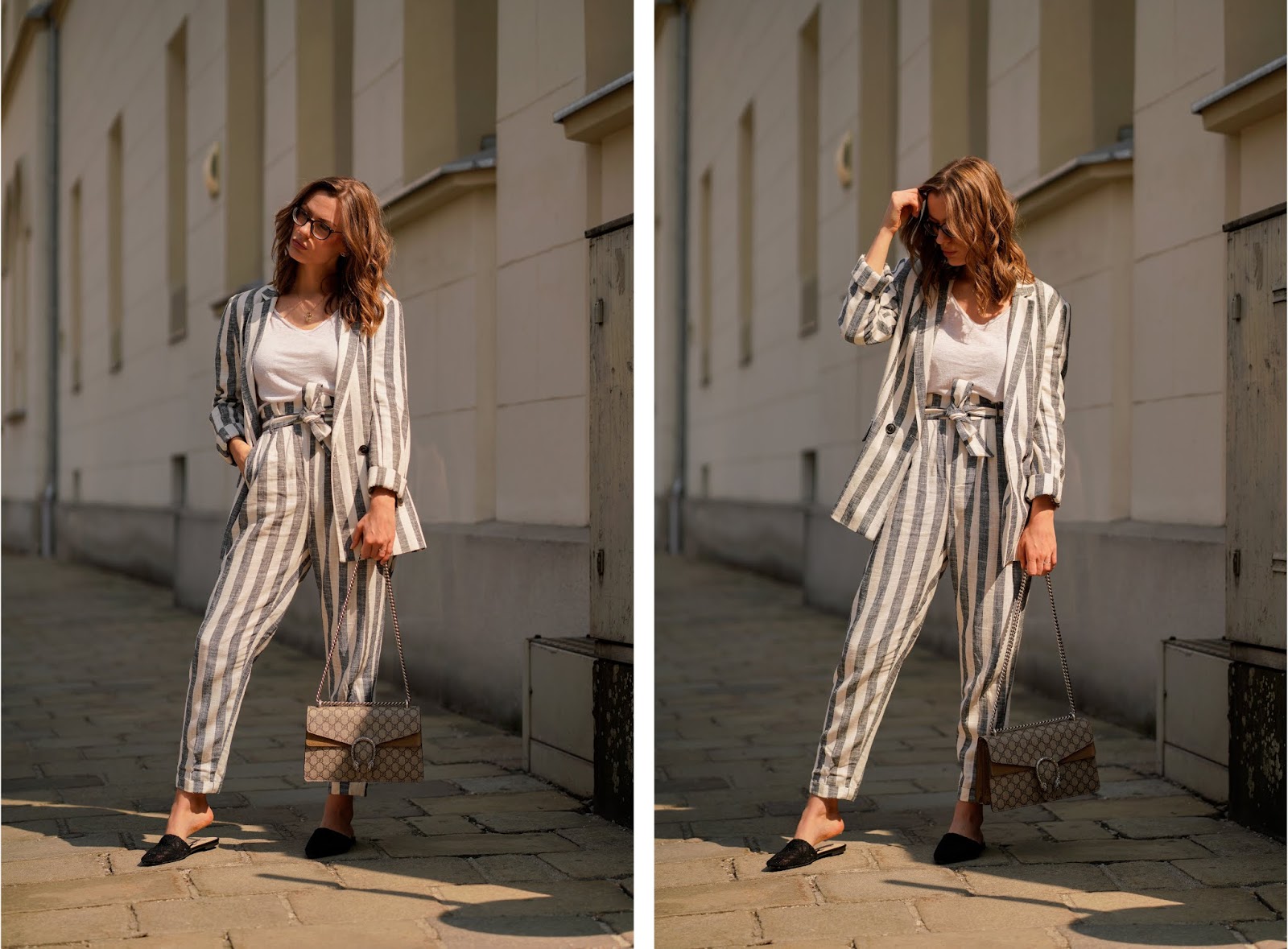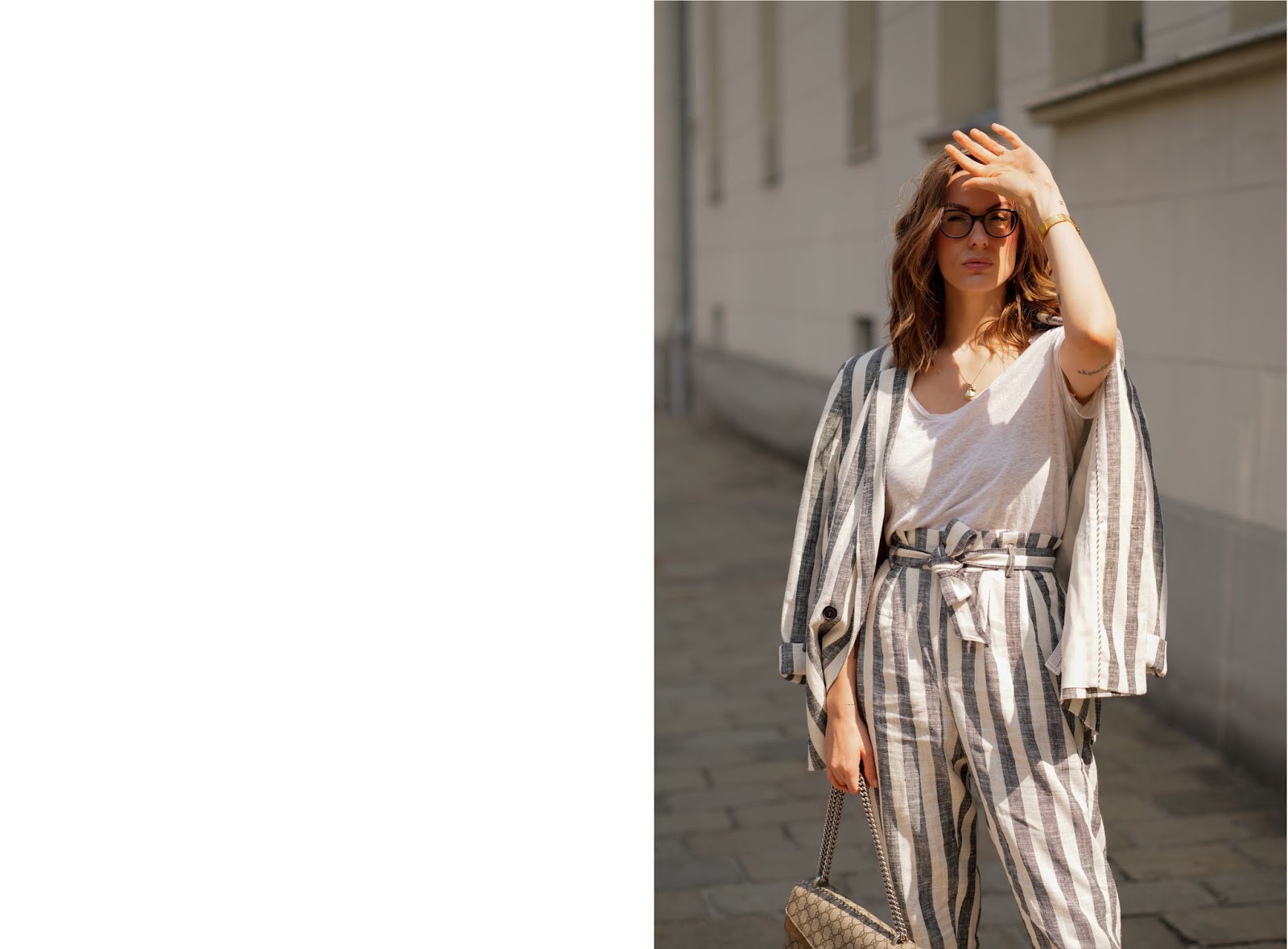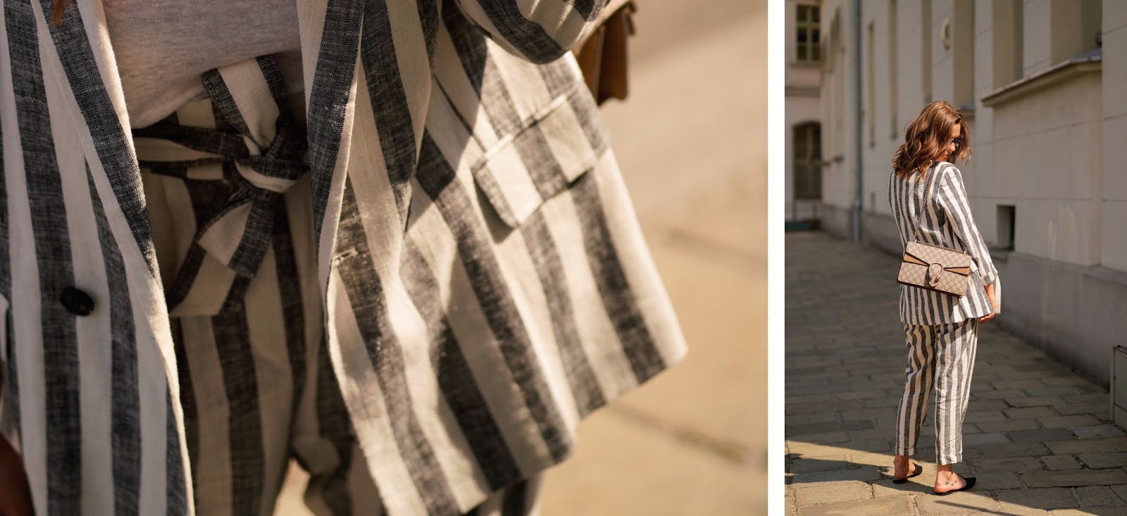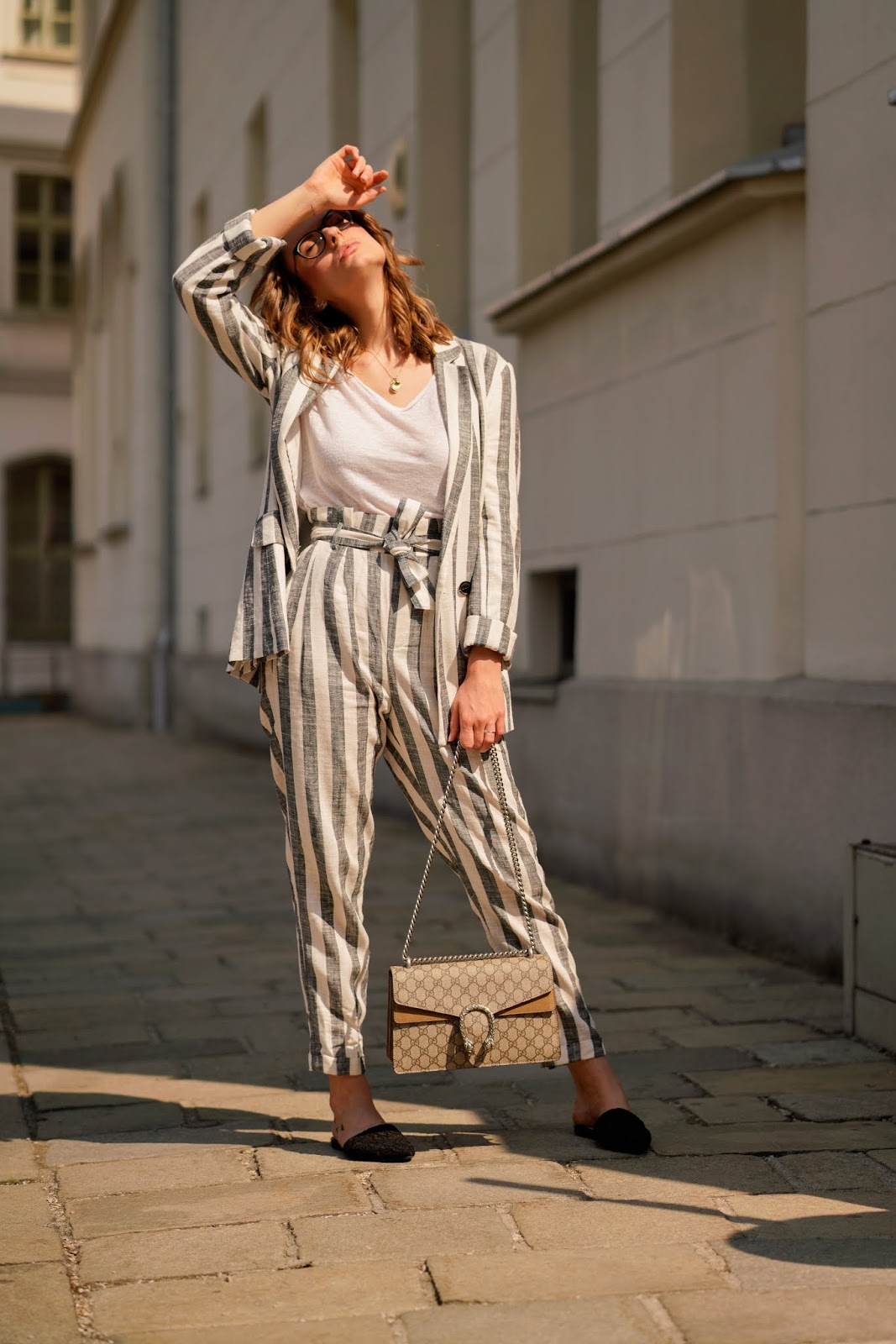 Diese gestreifte Leinenkombi sieht einfach super aus! Und die Gucci passt natürlich perfekt dazu!