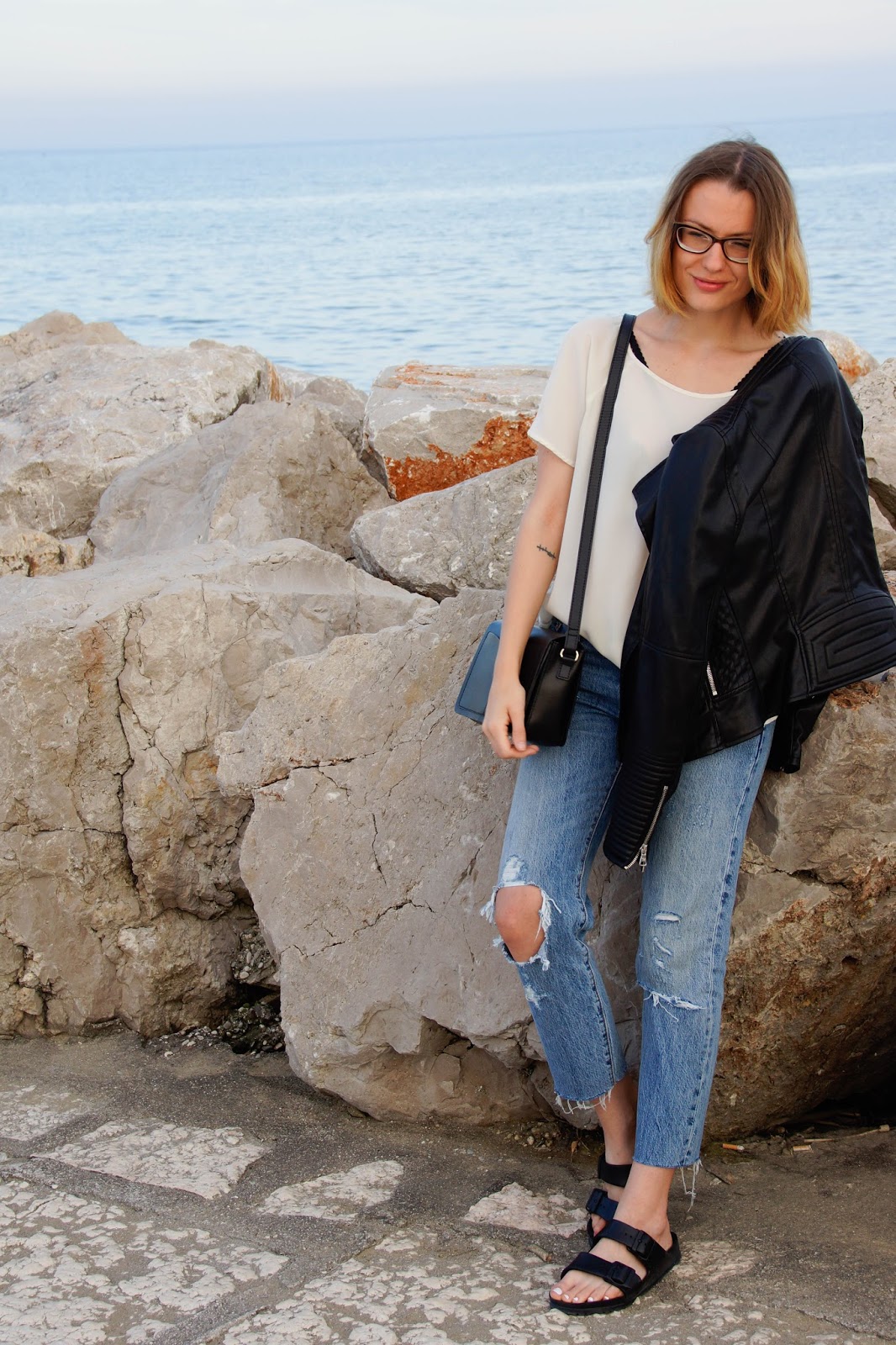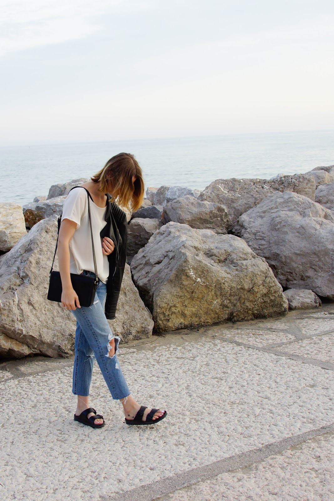 Die Levi’s 501CT wanderte als erstes Stück in meinen Koffer und an unserem ersten Abend in Caorle hat der Herr mein Outfit dann gleich am Meer abgelichtet. Zur Levi’s 501CT habe ich „klassisch“ ein weißes Shirt, meine Zara Lederjacke und meine geliebten Birkenstock kombiniert (tatsächlich das erste Mal, dass ich dieses Jahr offene Schuhe trage … traurig irgendwie).