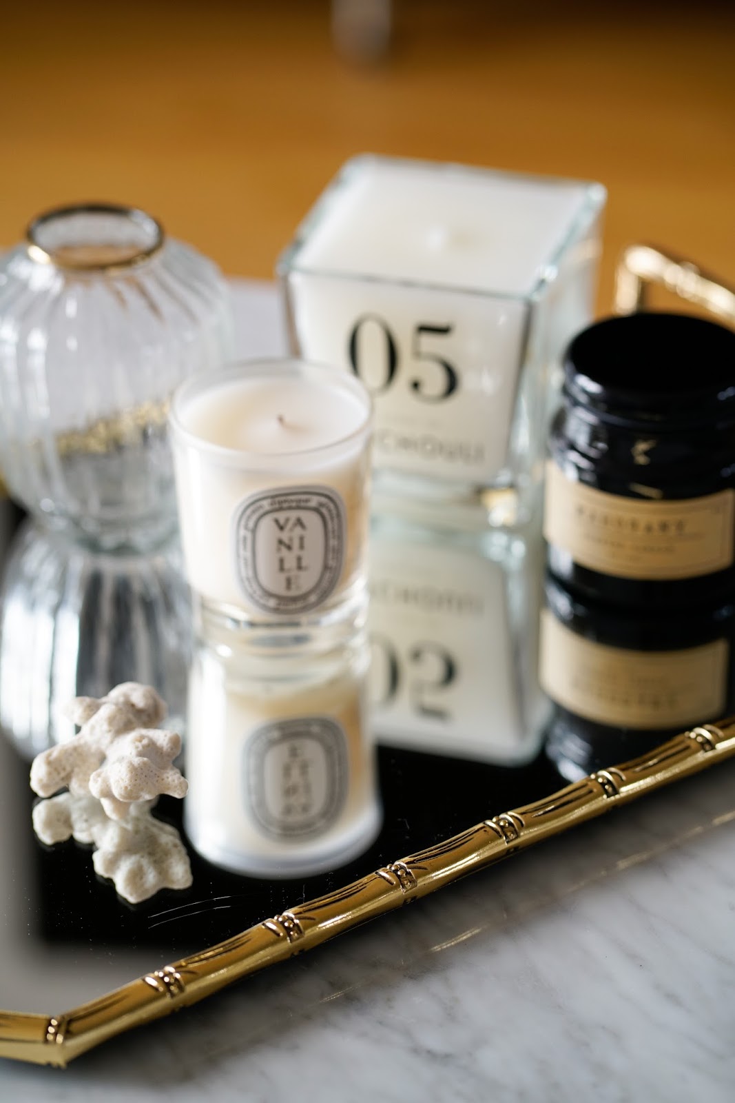 Ich liebe all die kleinen Details, die du präsentiert hast! Viele Kerzen, Marmor, ein Spiegeltablett, das ist unendlich schön! So ein Wohnzimmer möchte man gar nicht verlassen!