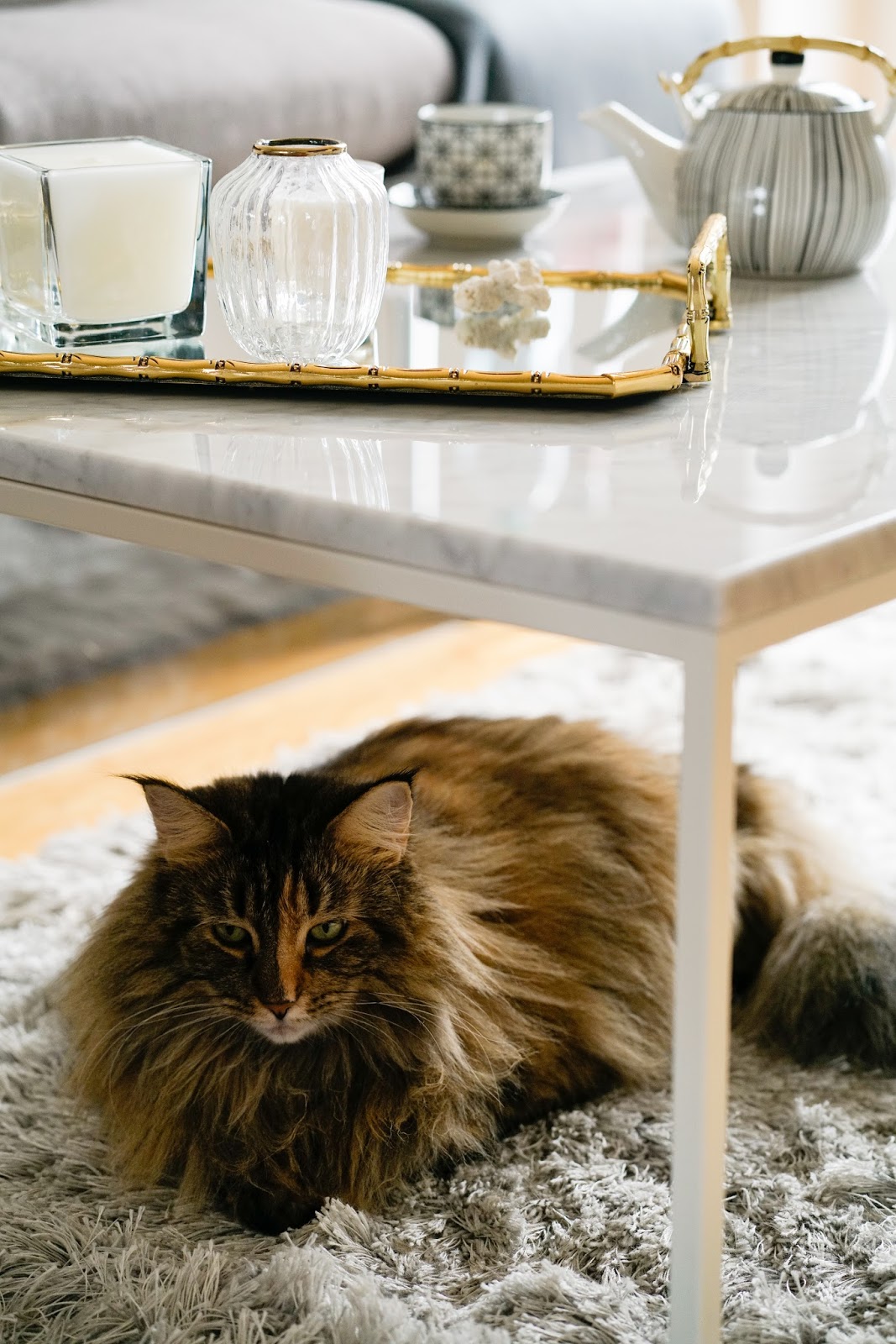 Your living area is like a dream! The exact colour palette that I would love in my own home, especially the gold accents and the beautiful marble!