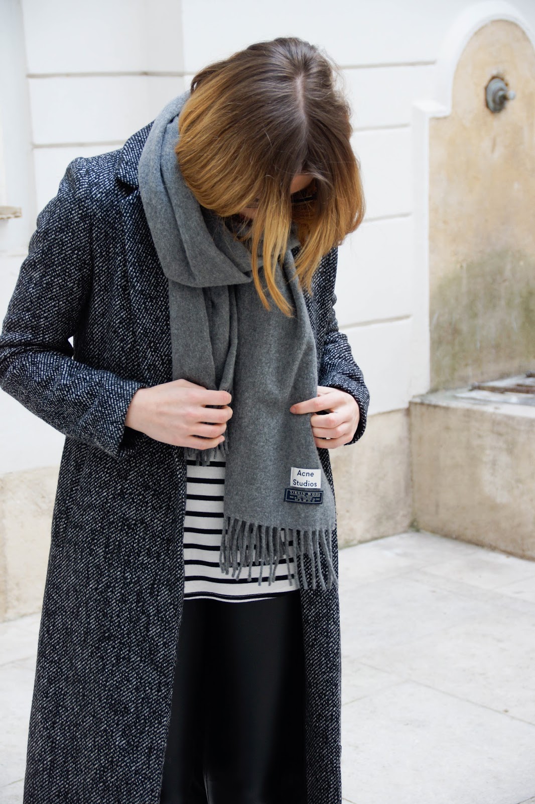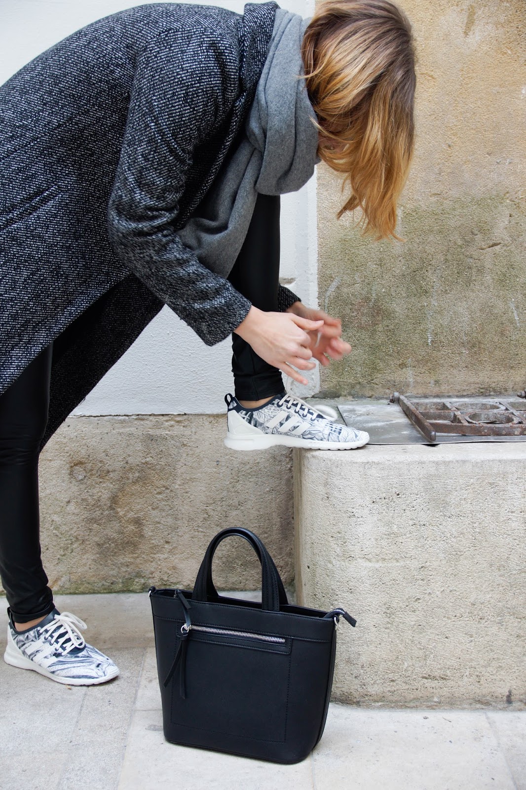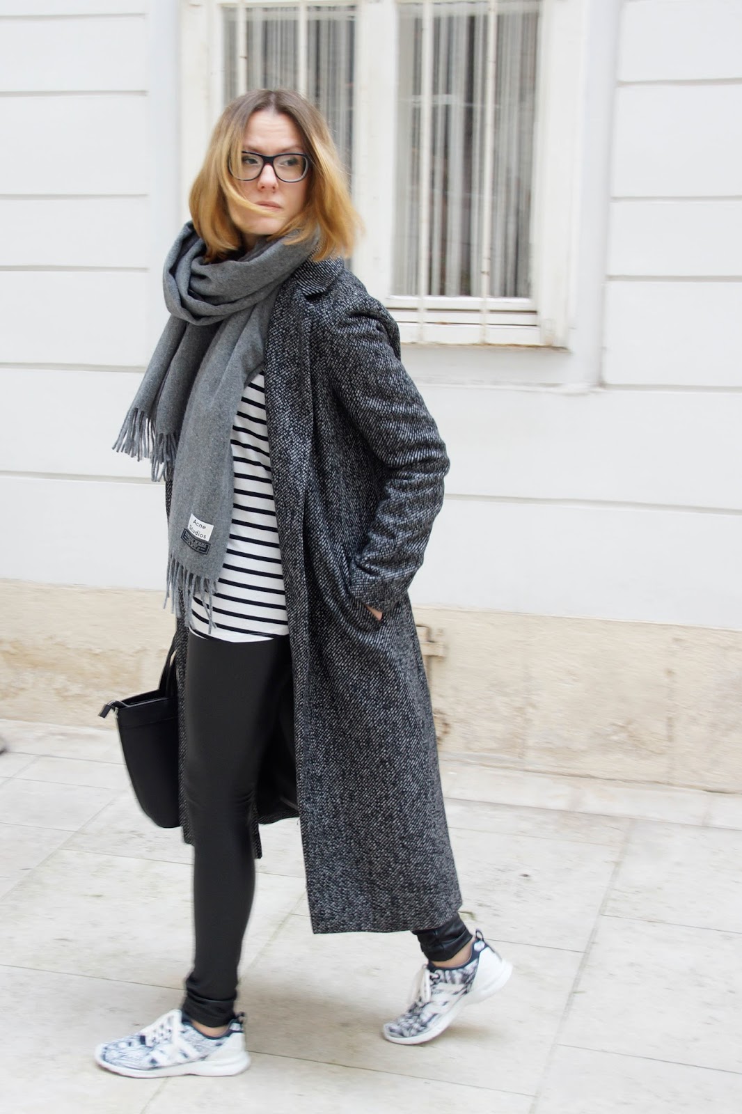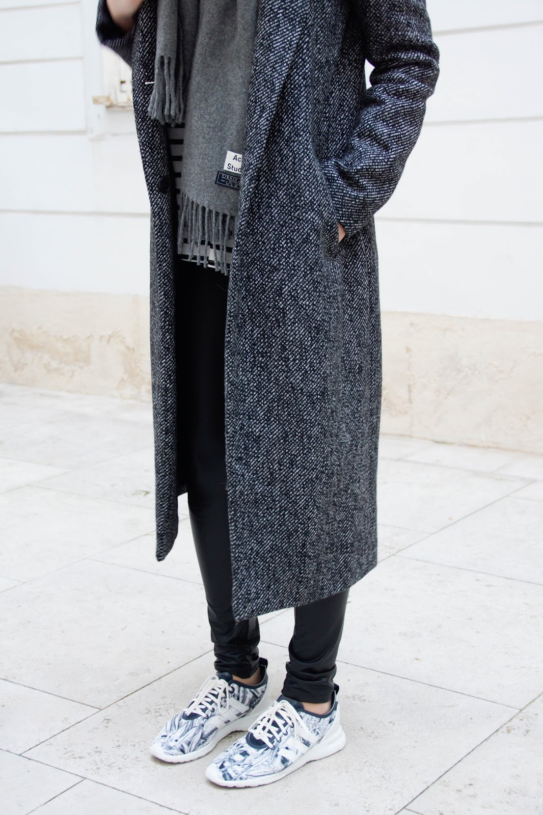 WEARING – coat: zara // knit: h&m men // shirt: forever21 // leggings: calzedonia // bag: mango // scarf: acne studios // sneakers: adidas flux via def-shop