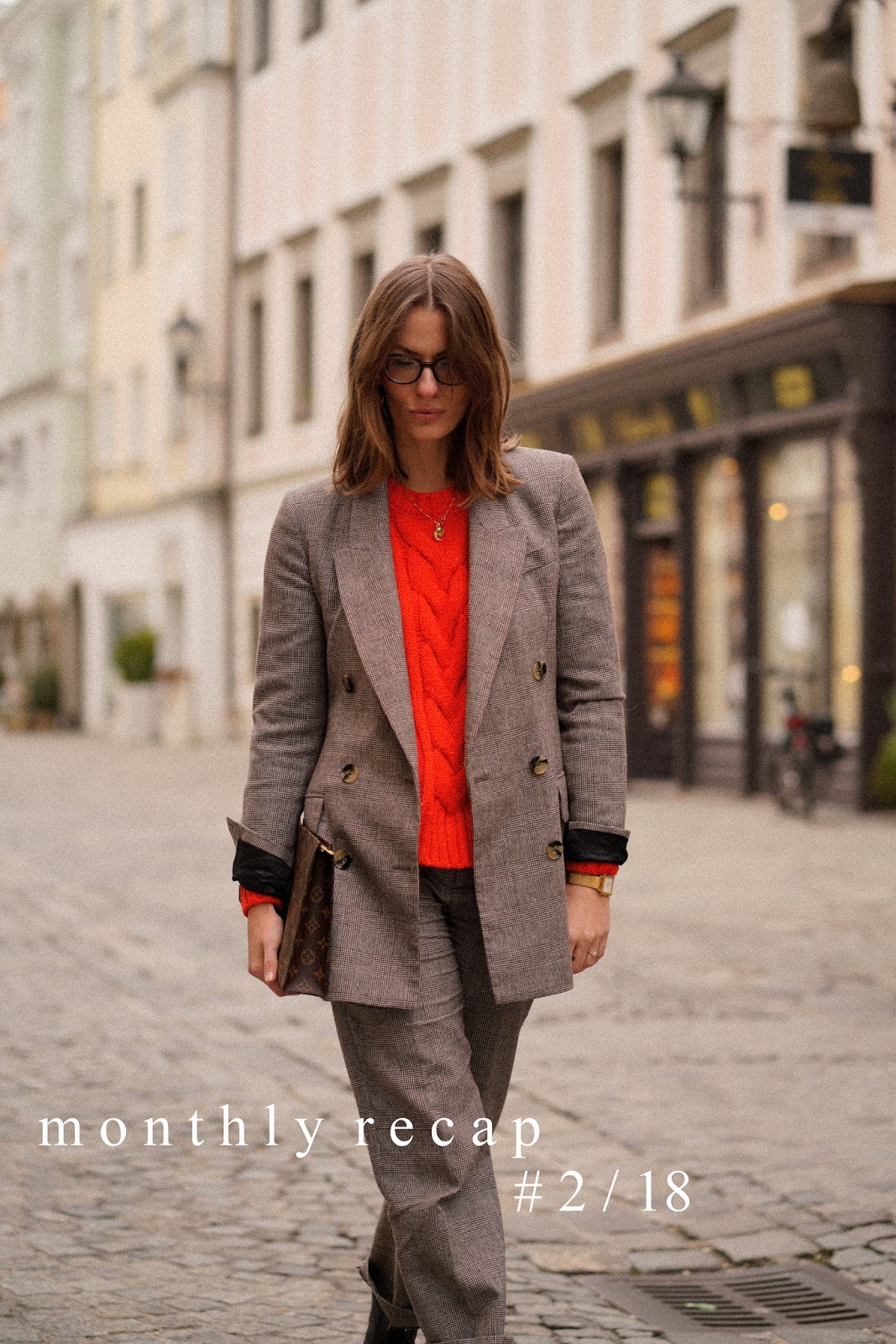 Gekauft habe ich diesen Monat nicht viel, aber mir fehlt momentan irgendwie auch die Zeit dafür - sogar zum Durchstöbern von Onlineshops. Selbst bei unserem Wien Trip war ich ganz brav und hab nur Window geshoppt, auch wenn sich Steffi und ich in jedem Luxusladen durchprobiert haben. Was bei mir im Februar allerdings einziehen durfte, war ein Bouclé-Kostüm von Zara, das ein klein wenig an Chanel erinnert. Das musste ich einfach haben! Jetzt muss es nur noch warm genug dafür werden. Am liebsten gertragen habe ich im Februar alles in Braun/Beige- und Weißtönen. Meine liebsten Outfits waren daher mein OVERSIZED STRICKLook und mein Karoanzug in Kombination zur Trendfarbe Rot, den ich euch im Post >HOSENANZUG IM RETRO CHIC: THE CHECKERED SUIT gezeigt habe.