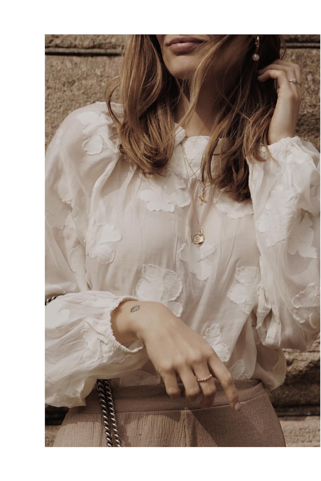 Absolut toller Look und die Bluse mit dem zarten Goldschmuck ist einfach der perfekte Hingucker ♥
