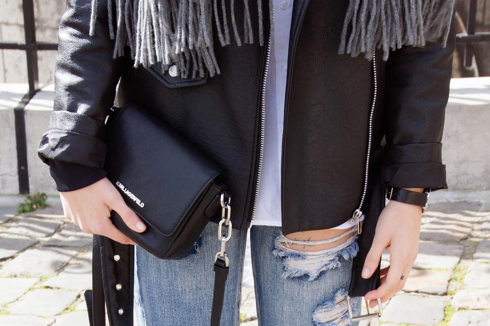 Ripped Jeans with shoulder bag - Perfect Style.