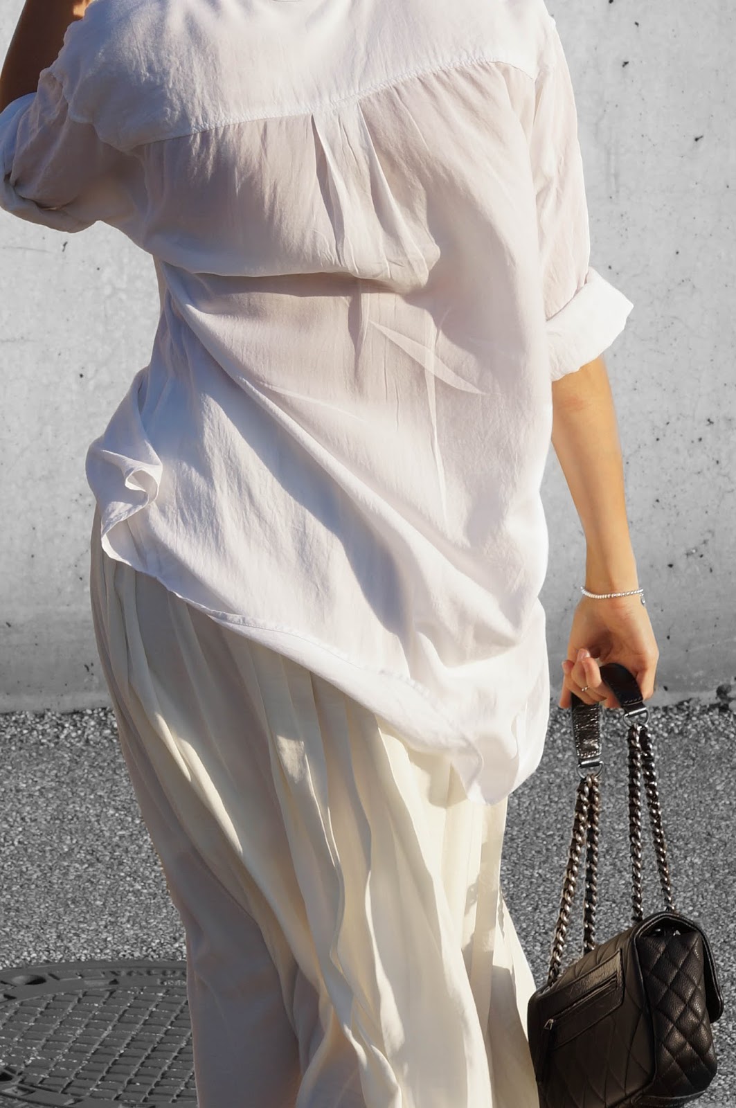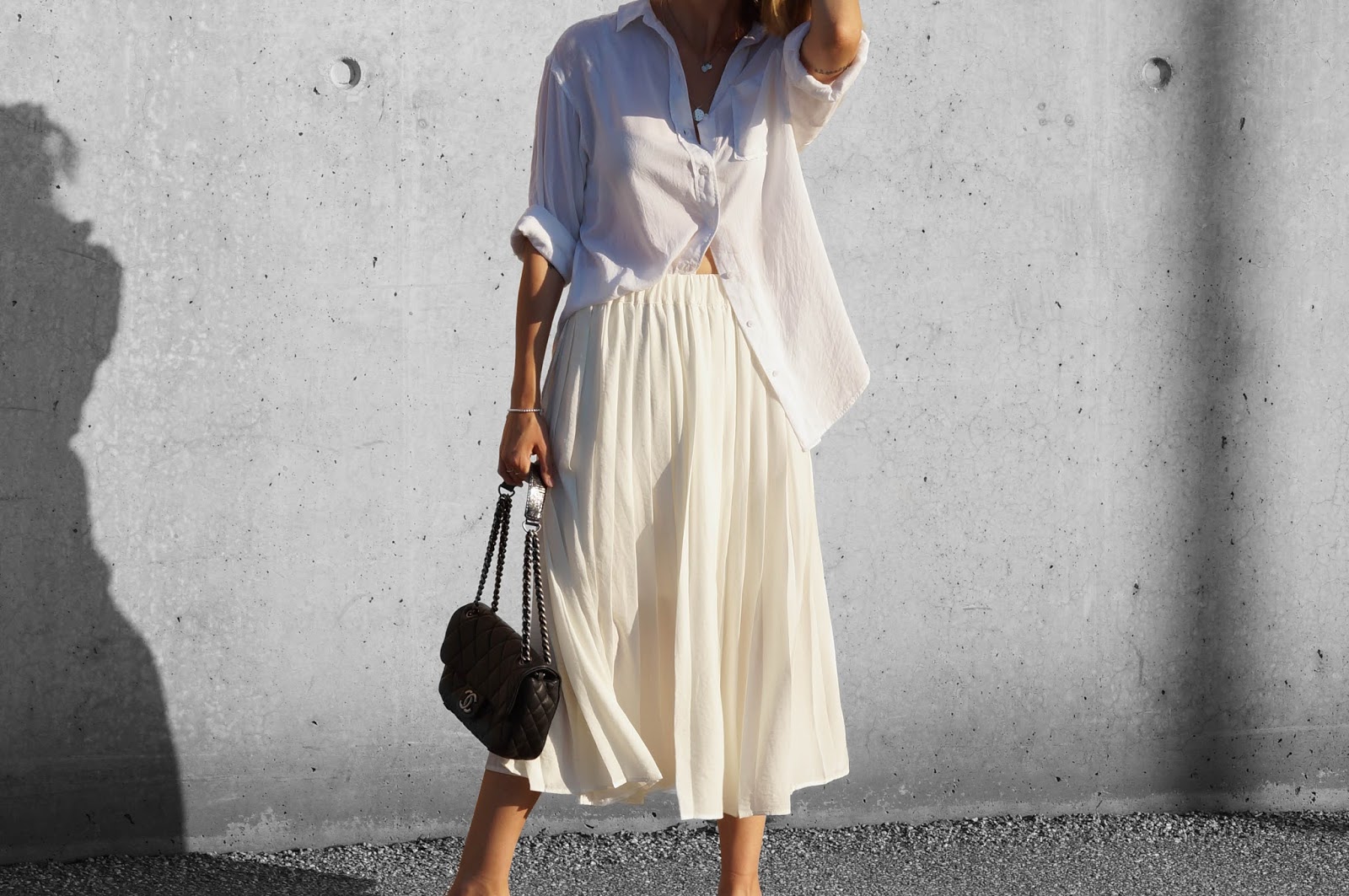 Ich liebe diese helle Farben kombiniert mit der Tasche. So kommt die Chanel gut zur Geltung.