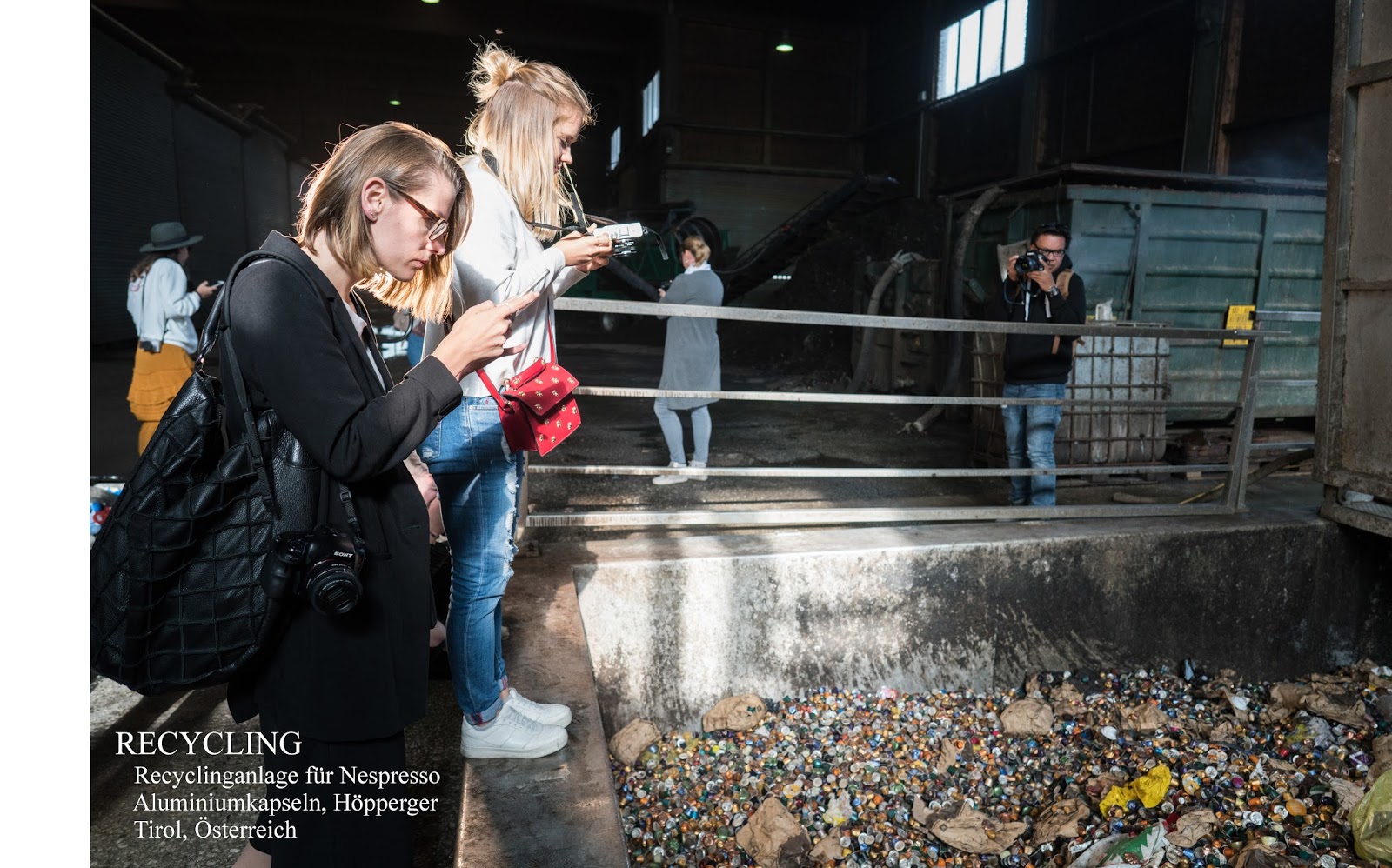 Unter dem Slogan The Positive Cup hat Nespresso ein ambitioniertes Nachhaltigkeitsprogramm ins Leben gerufen, das sich nicht nur mit der Verwendung und Verwertung von Aluminium, sondern auch mit nachhaltigem und umweltfreundlichem Kaffeeanbau, fairen Bedingungen für Kaffeebauern und Klimaveränderungen befasst (mehr dazu könnt ihr hier nachlesen). Nespresso versucht, bis 2020 die Rücknahmekapazität für gebrauchte Aluminiumkapseln weltweit auf 100% zu steigern und damit die Recyclingquoten zu erhöhen. Zudem sollen die von Nespresso gesammelten Kapseln, sofern dies sinnvoll ist, wiederverwertet und damit ein geschlossener Kreislauf geschaffen werden. Dafür arbeitet Nespresso mit lokalen Partnern an der Bereitstellung innovativer Lösungen für Sammelsysteme und Recyclingmöglichkeiten. Einer dieser lokalen Partner ist das Tiroler Familienunternehmen Höpperger, das seit 2012 mit der Wiederverwertung aller in Österreich gesammelten, gebrauchten Nespresso-Kapseln betraut ist. Während die Aluminiumkapseln gänzlich und unendlich oft recycelbar sind (!!), wird aus dem Kaffeesud Biosubstrat erzeugt, das zu Biogas verwertet wird. Im Rahmen des Nespresso Events durften wir einen Blick hinter die Kulissen werfen und die Anlage besichtigen. Was prinzipiell super spannend war, entpuppte sich gleichzeitig als der schlimmste Geruch, den ich jemals wahrnehmen musste … Echt unvorstellbar! Dafür sind für euch ein paar tolle Fotos entstanden ☺