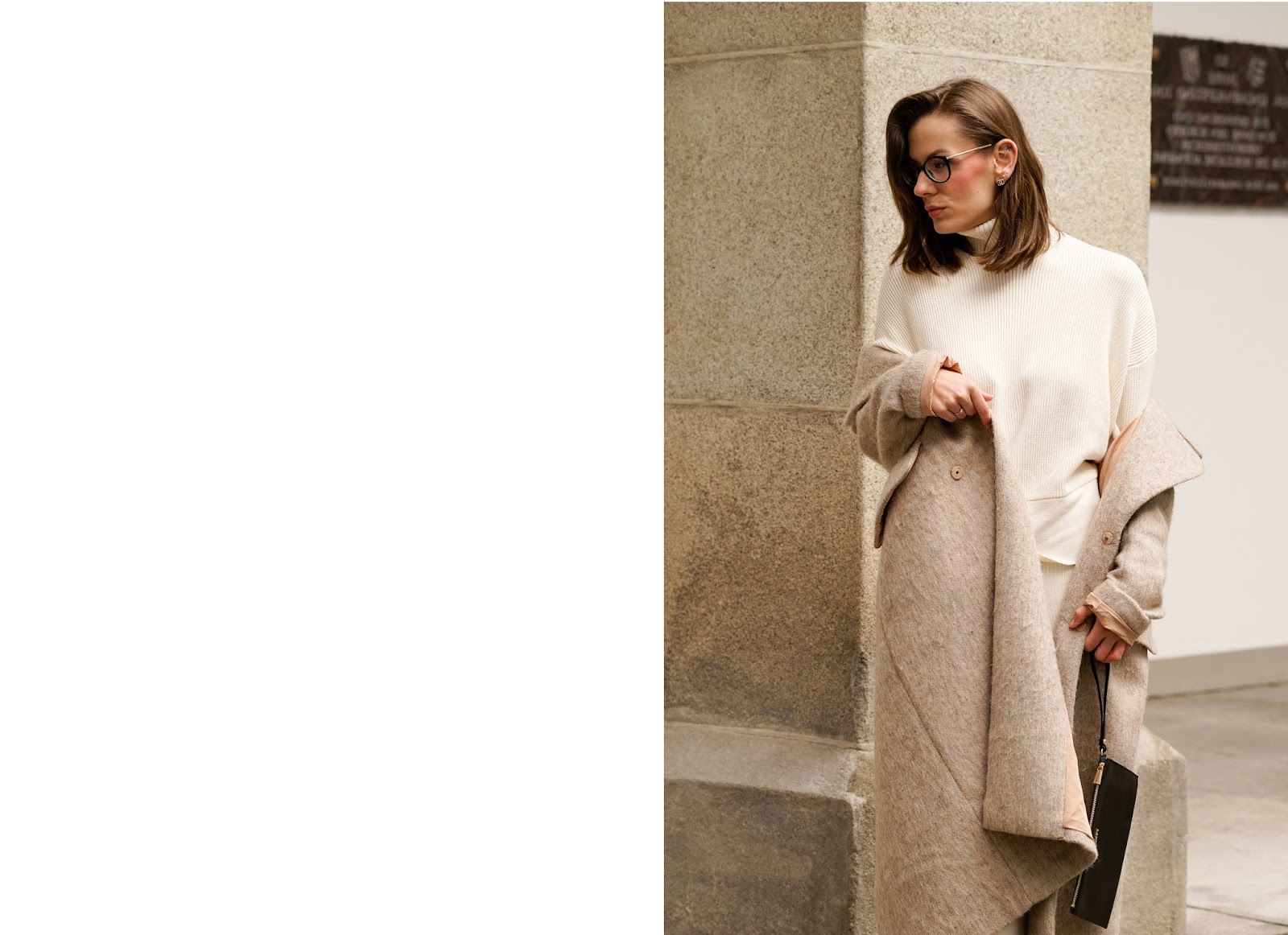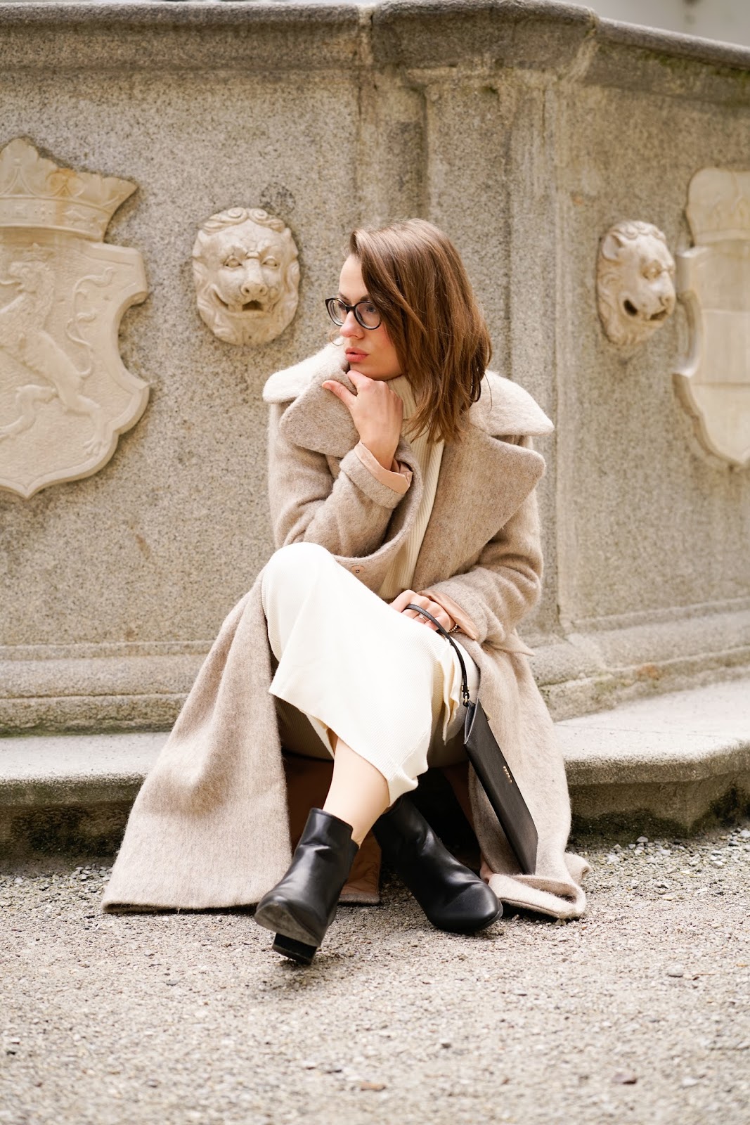 WINTER WHITES // WEARING – wool coat: h&m // statement knit: zara // pencil skirt: zara // boots: hm // bag: furla