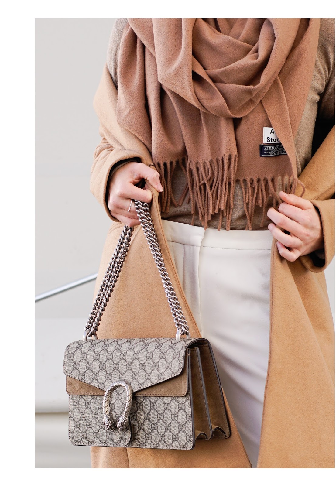 WEARING – camel coat: zara // cashmere shirt: funktionschnitt // culottes: zara // scarf: acne studios // watch: wardour&brewer // ring: pandora // bag: gucci dionysus // heels: högl