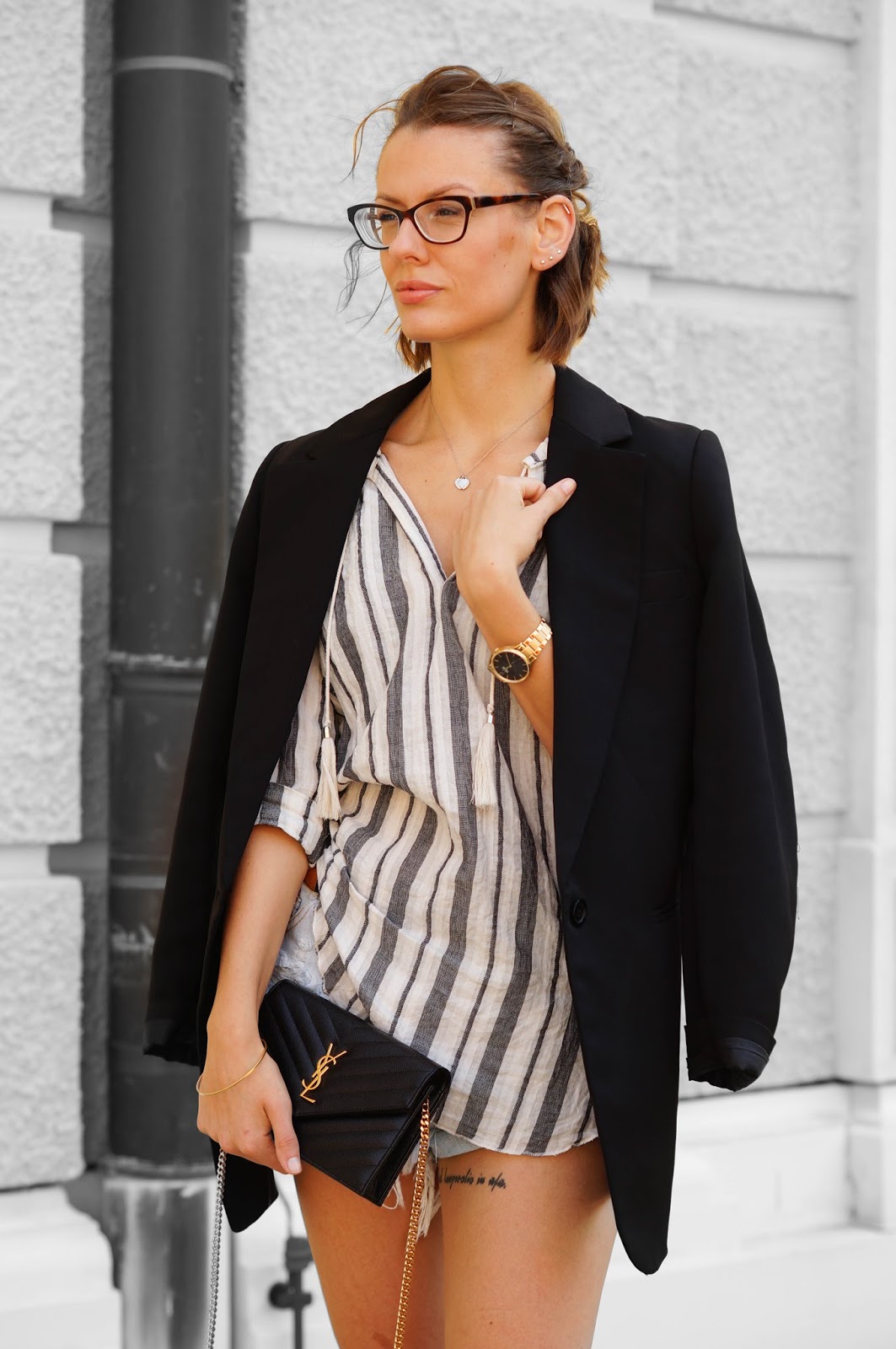 WEARING – shirt: bikbok // shorts: glamorous // blazer: h&m // watch: nicole vienna // necklace: tiffany&co // bangle: jukserei // bag: saint laurent woc // sandals: primark