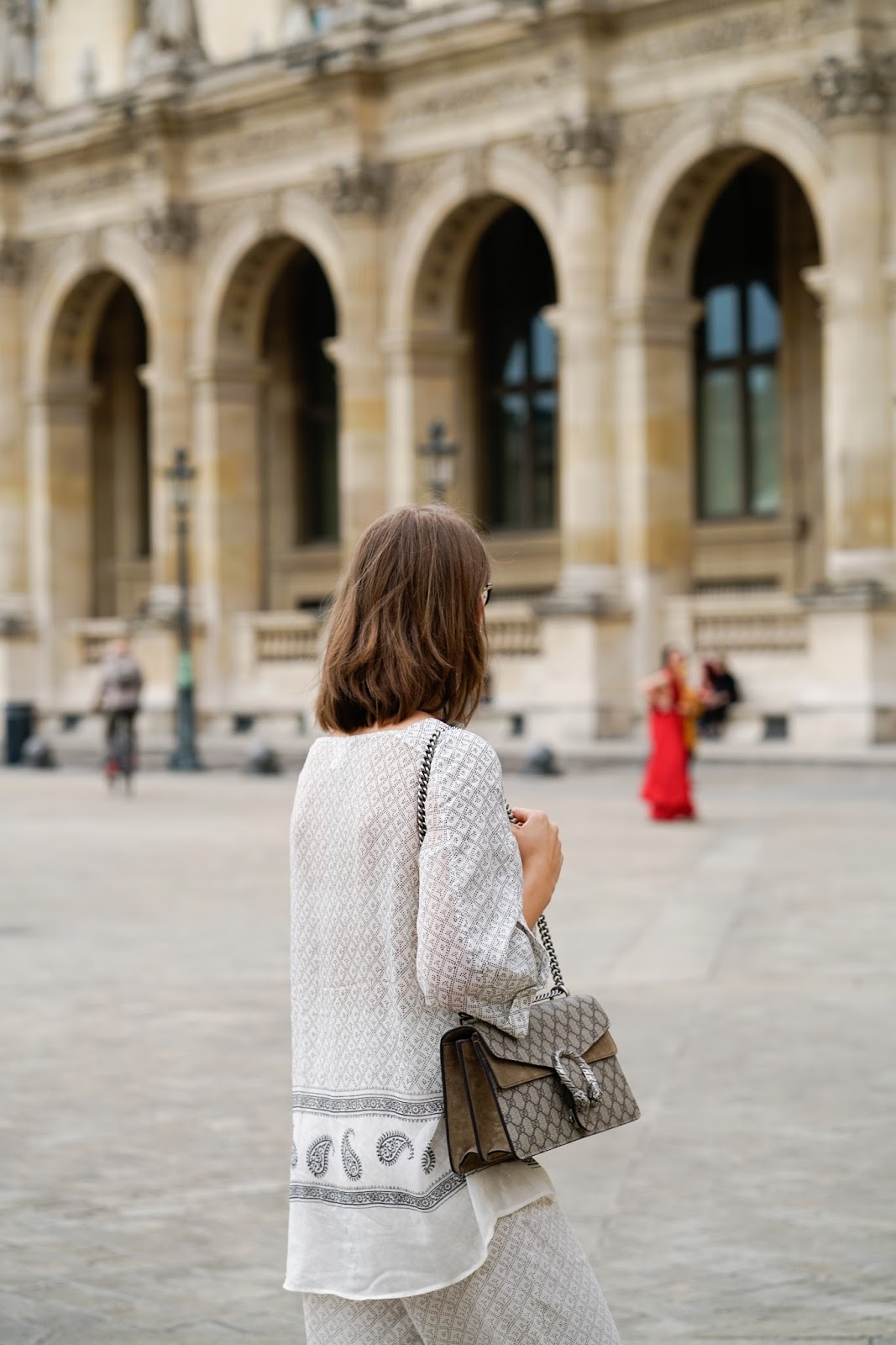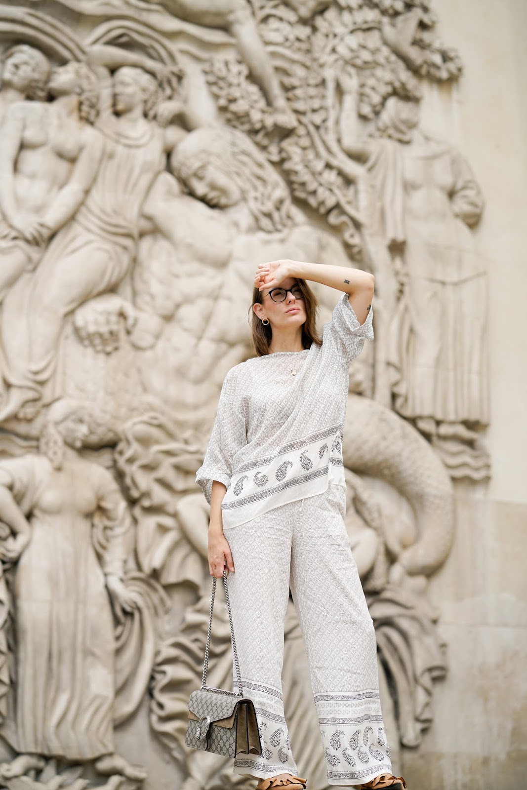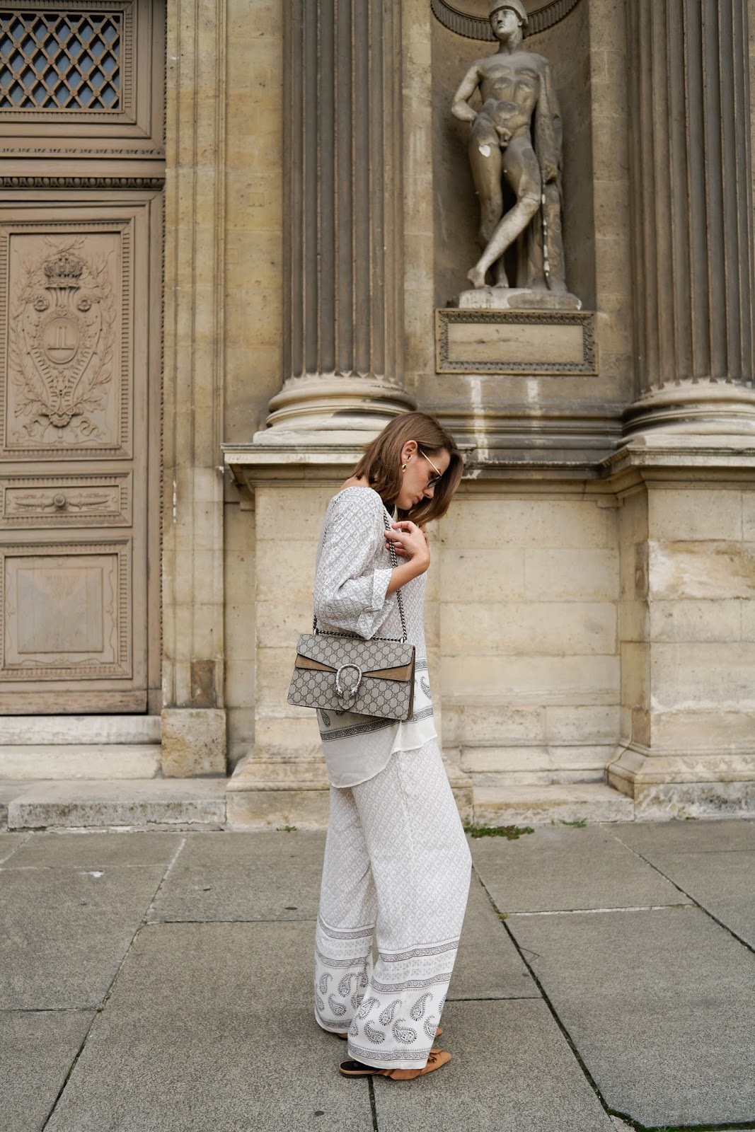 Wir sind diesmal ohne fixe Shooting Location einfach durch die Stadt spaziert und haben dort spontan Fotos gemacht, wo es uns gefallen hat. So zeigt mein Outfitpost gleich ein paar meiner Lieblingsplätze in Paris ab, wie zum Beispiel das Palais de Tokyo oder den Louvre. Es war echt mal ne tolle Erfahrung, sich ein wenig treiben und sich von der tollen Umgebung einfach mal inspirieren zu lassen. Ganz ohne die bestimmte Intention, einen bestimmten Ort aufzusuchen, um dort bestimmte Fotos zu machen. Ich trage Pyjama Pants, Top und Slippers von H&M und meine GUCCI Dionysus.
