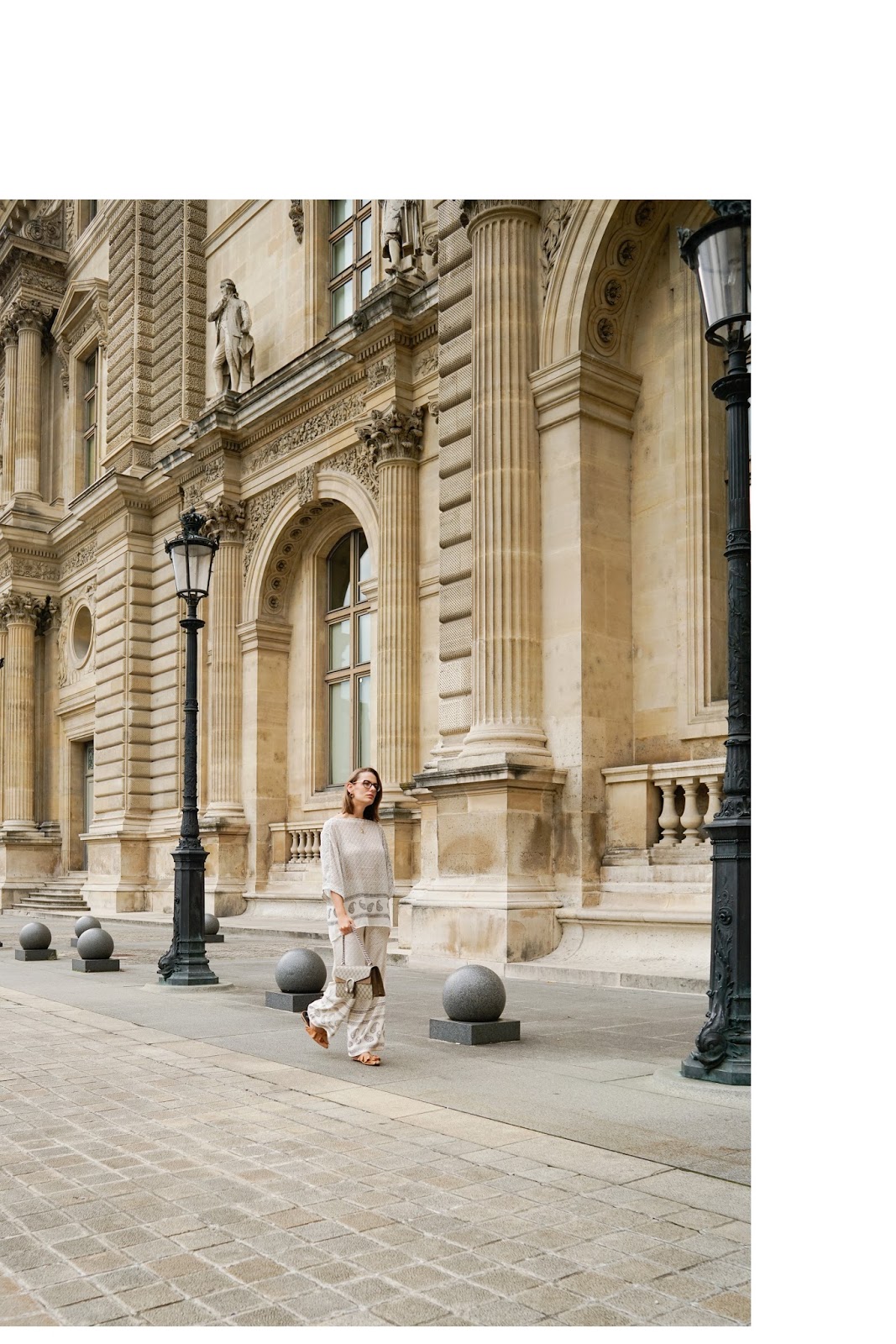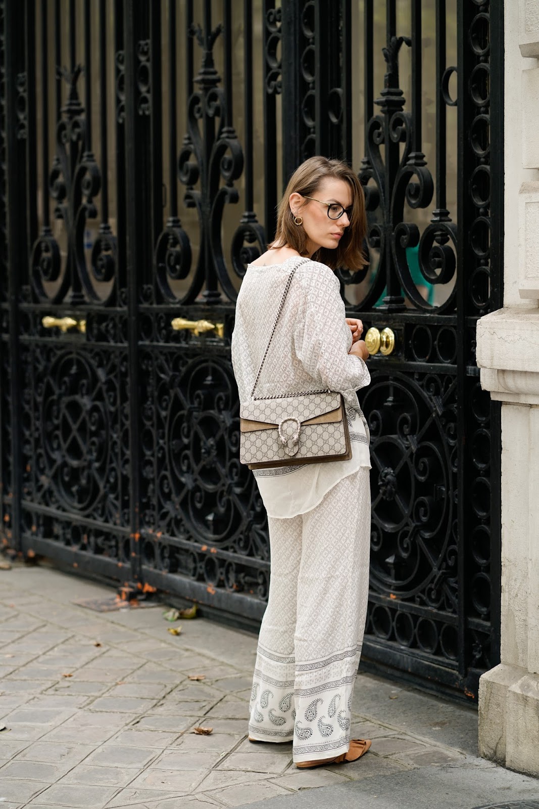 Mein Allover Pyjama Look vereint gleich meine zwei größten Fashion-Leidenschaft diesen Sommer: Die Farbe Weiß (in all ihren Abstufungen) und Pyjamas. Nachdem ich den Allover Pyjama zum ersten Mal in einem H&M Schaufenster gesehen habe, ging er mir nicht mehr so wirklich aus dem Kopf. Ich will nicht sagen, dass ich sofort hin und weg war. Erstmal war ich etwas skeptisch, ob so ein Allover Look auch wirklich funktionieren würde. Nach ein paar Tagen hab ich ihn dann aber doch probiert und eure Reaktion auf meine InstaStories waren tatsächlich so positiv, dass ich mir gedacht hab: Warum nicht mal probieren! Zumal die zwei Teile getrennt voneinander getragen ja auch toll aussehen und mit dem Kauf somit nichts verloren gewesen wäre. Trotzdem hatte ich von Anfang an einen Allover Pyjama Look vor Augen - und Paris. Ich hab mir das Outfit daher ganz exklusiv für unseren Urlaub vergangene Woche aufgespart und muss sagen, es war echt perfekt für einen Citytrip im Sommer! Einerseits musste ich nicht lange überlegen, was ich anziehen sollte. Andererseits war der Zweiteiler nicht nur schön luftig und stylish, sondern auch noch super gemütlich. Tipps und Tricks, wie man den Pyjama Trend am besten umsetzt, habe ich euch übrigens bereits in meinen beiden Posts THE PYJAMA PANTS und HOW TO WEAR: THE PYJAMA TREND verraten.