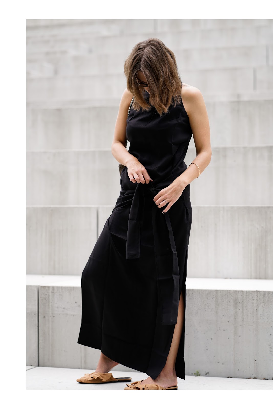 Ach was für ein wahnsinnig tolles Outfit das mal wieder ist! Ich bin ganz vernarrt in das schwarze Maxi Kleid und liebe die Kombination mit den Slippers!