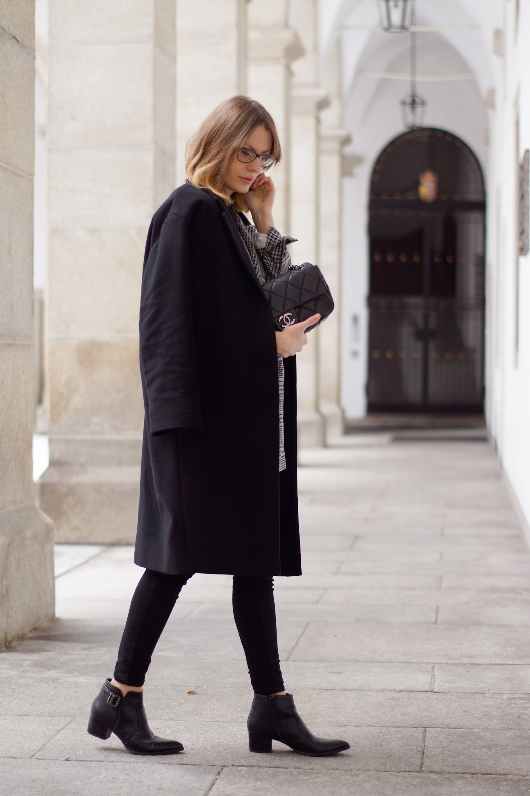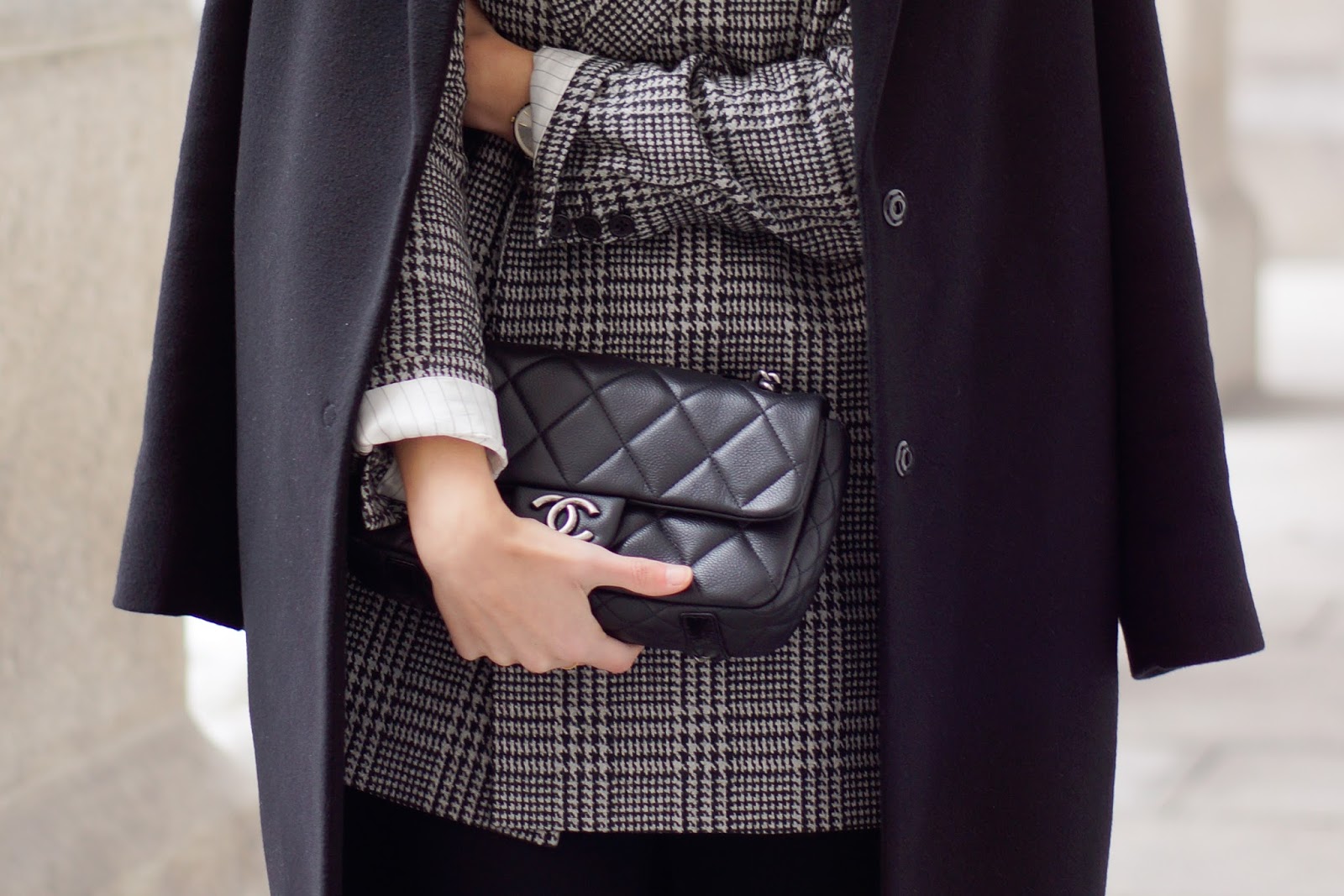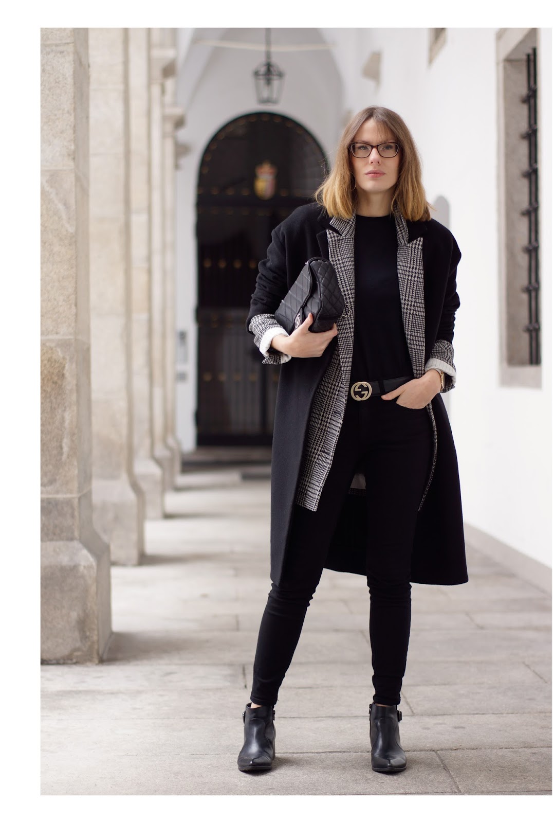 On weekends, I don’t want to waste a lot of time on thinking what to wear, I stick to my winter go-to look. Most of the time this means me wearing a warm shirt or knit, blazer and a coat. At the moment it’s mostly my H&M Trend houndstooth check blazer and my new cashmere coat from H&M Premium. I feel very comfortable in my go-to look and it almost fits all my usual activities like lunch, cinema dates or shopping trips. I wear a merino shirt from FUNKTIONSCHNITT, a houndstooth check blazer from H&M TREND and cashmere coat from H&M PREMIUM, ZARA pants, DEICHMANN boots, a GUCCI belt and my CHANEL.